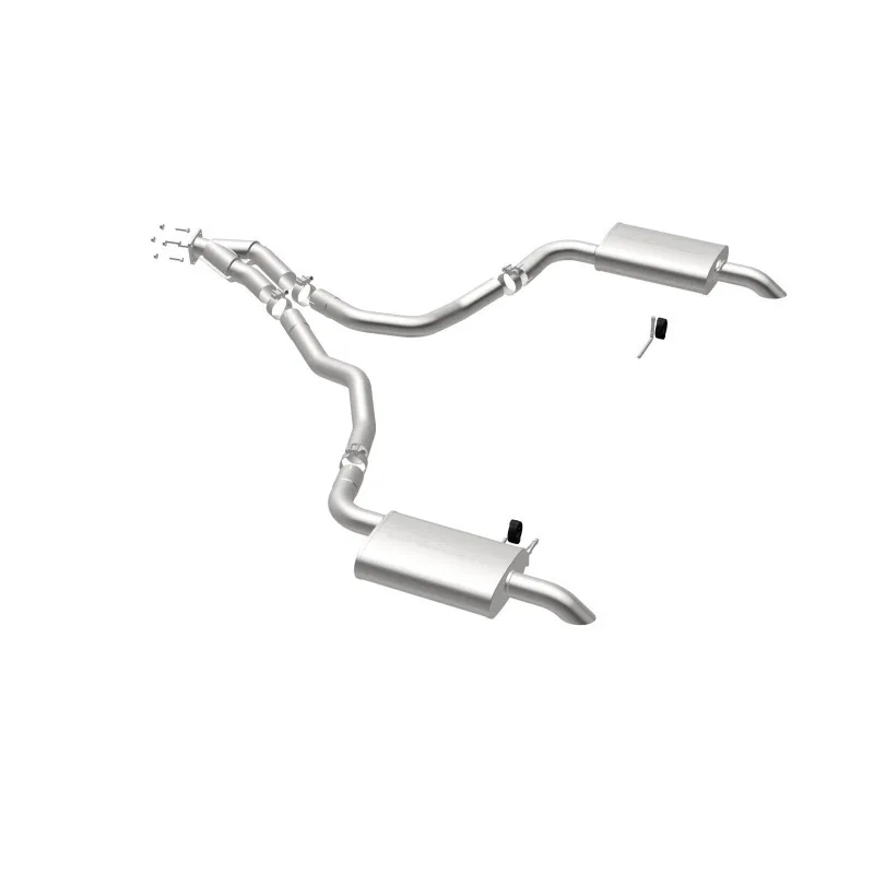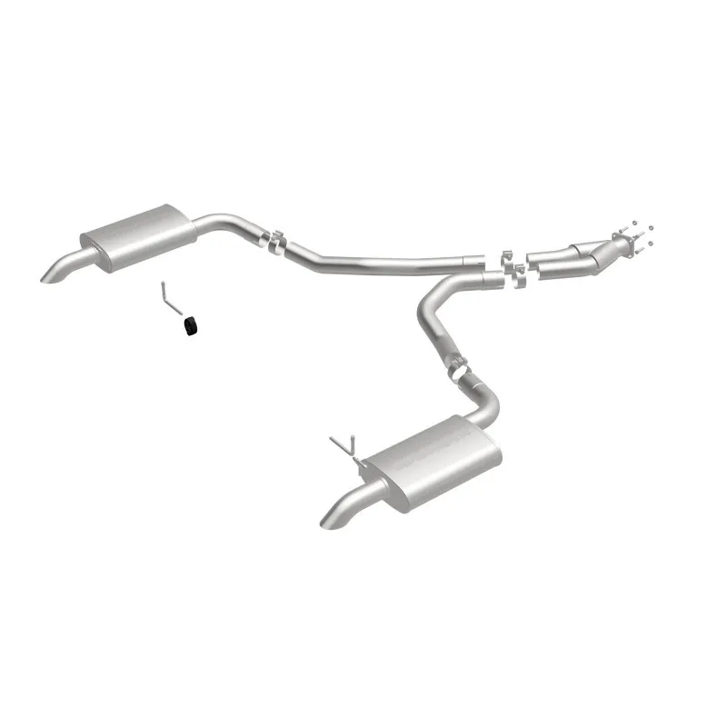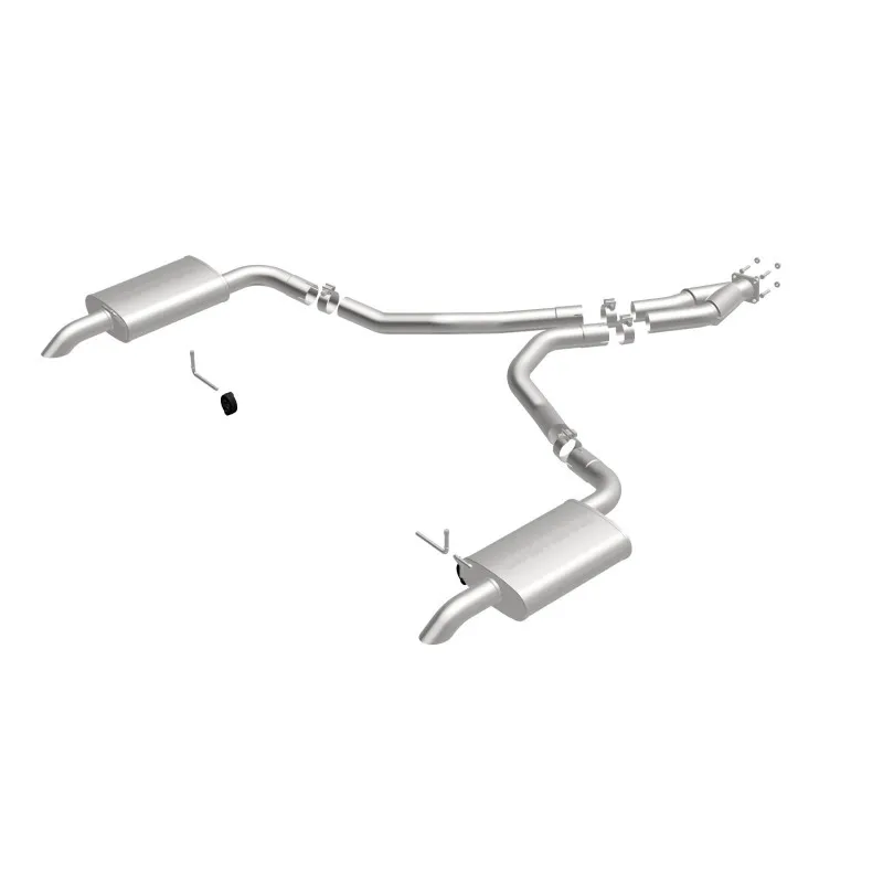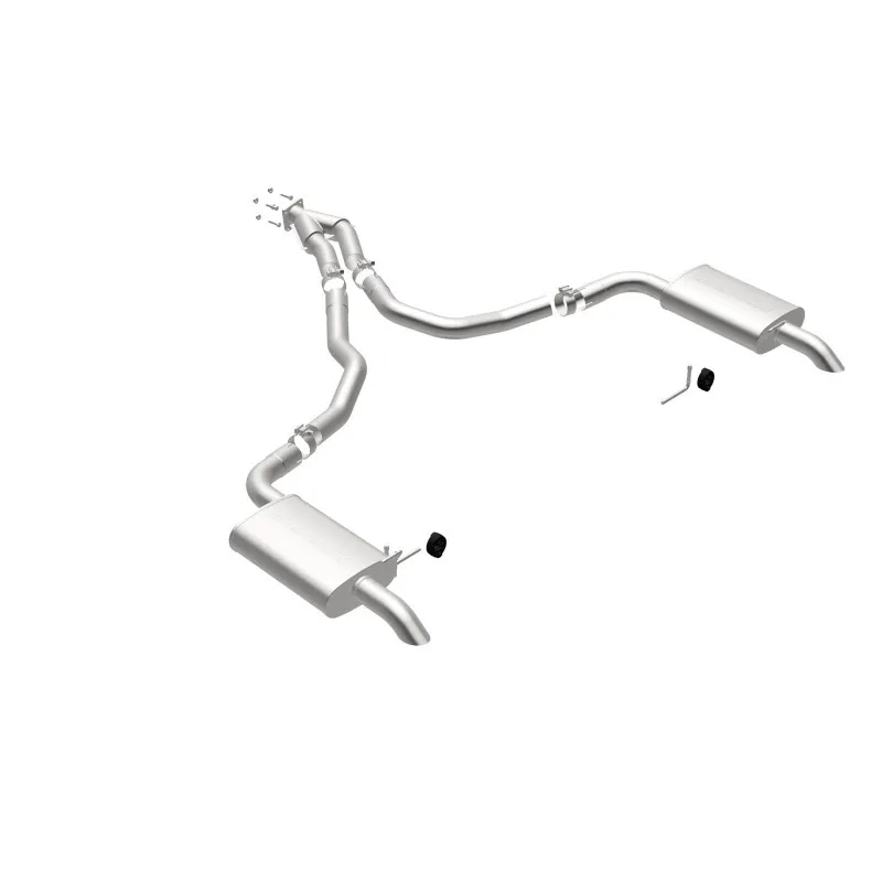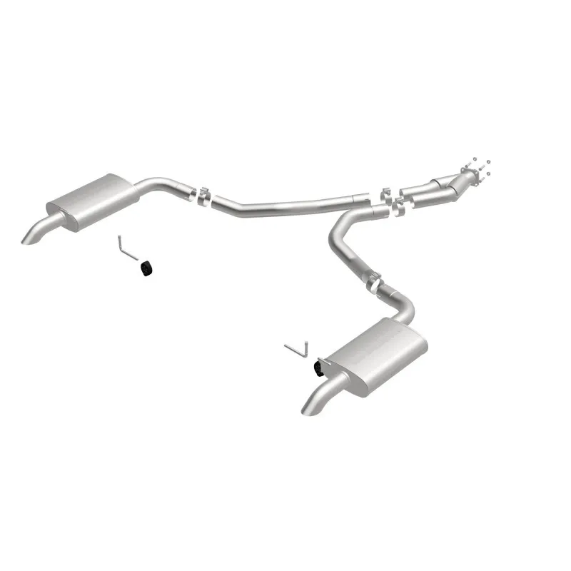 The MagnaFlow 1975-1979 Chevrolet Corvette Street Series Cat-Back Performance Exhaust System 16710 brings out the personality of your 5.7L 1975-1979 Chevrolet Corvette with our signature resonant, powerful engine tone and dyno-proven performance. Thanks to its fast-flowing, mandrel bent 2.5in. main piping and 2 Straight-Through mufflers ending in a Dual Split Rear exit with 2.5in. Satin Welded-On Single Wall Turndown Cut Edge tips, this Chevrolet Corvette exhaust kit has the performance chops to match its sporty sound and appearance. Upgrade your ride to the next level with an exhaust that has the pipes to put other Chevrolet Corvette's to shame. With this system your vehicle will be producing Moderate exterior and Mild interior sound levels while leaving other cars and trucks feeling envious at every stoplight. Exhaust kit 16710 features a cat-back layout that replaces your ride's stock exhaust components from near the catalytic converter on back. Extensive 3D scanning during development has resulted in a direct-fit design that you can easily install yourself. 16710 is produced using CNC precision robotic manufacturing techniques and is backed by MagnaFlow's 1-year limited finish warranty and limited lifetime construction warranty.