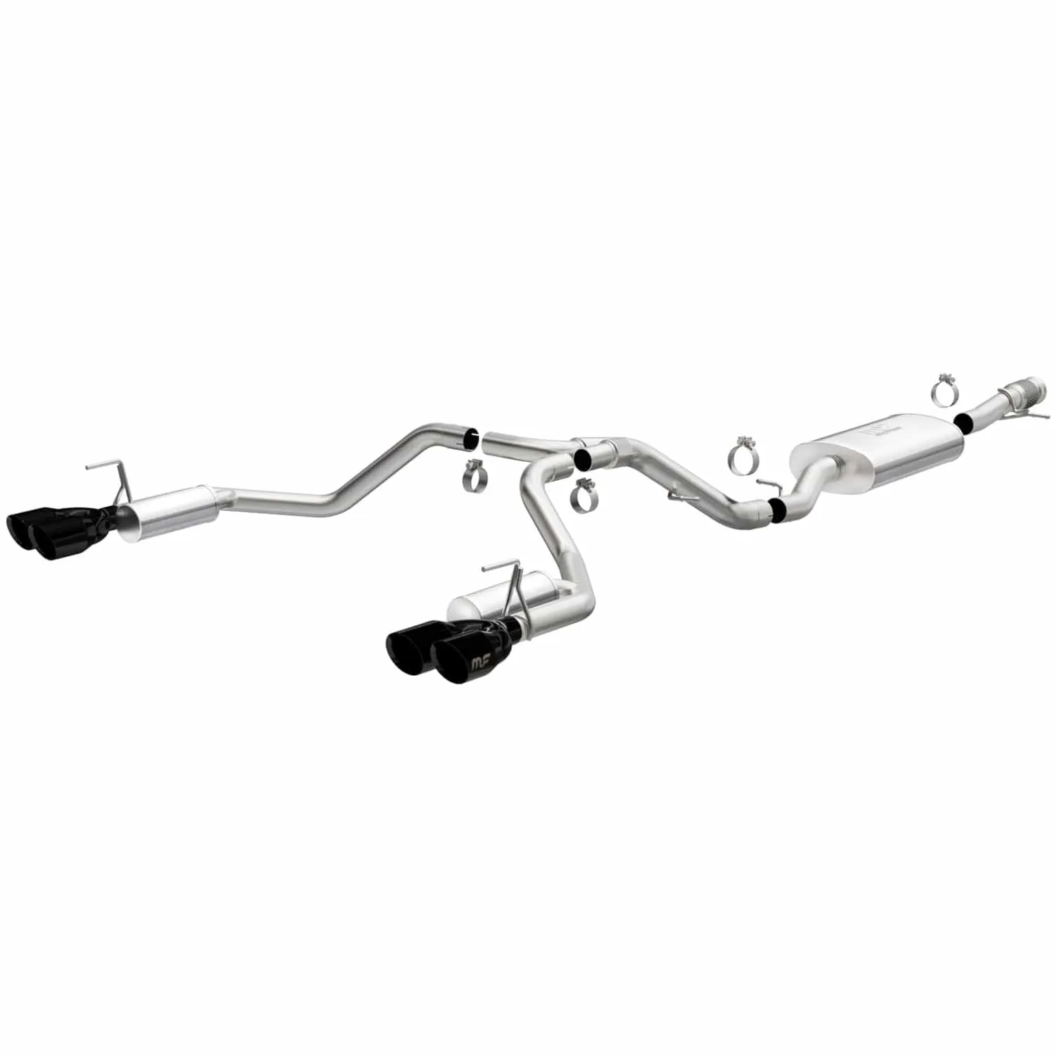 The MagnaFlow Chevrolet Tahoe/GMC Yukon Street Series Cat-Back Performance Exhaust System #19580 drastically improves your 2021-2023 Chevrolet Tahoe High Country or GMC Yukon Denali by enabling MagnaFlows deep signature sound and dyno proven performance to work their magic in improving your driving experience while keeping interior noise in check. Noise control is possible thanks to MagnaFlows No Drone Technology (NDT), which uses quarter-wave passive noise cancellation tuned to the specific droning frequency of your Chevrolet Tahoe High Country or GMC Yukon Denali in order to eliminate exhaust drone. NDT was designed to take the most popular bolt-on modifications into consideration. This cat-back exhaust kit features 3 diameter piping, straight-through muffler, quarter-wave resonators, quad split rear exit and black chrome-finished 4 tips for an extra sporty appearance. The exhaust system is made entirely of stainless steel and was designed from the beginning with weight and ground clearance in mind to improve durability and maintain your 2021-2023 Chevrolet Tahoe/GMC Yukons utility. CNC precision robotic manufacturing and mandrel bent tubing allow for hassle-free bolt-on installation. MagnaFlow stands by the reliability of their products with a limited lifetime warranty.
