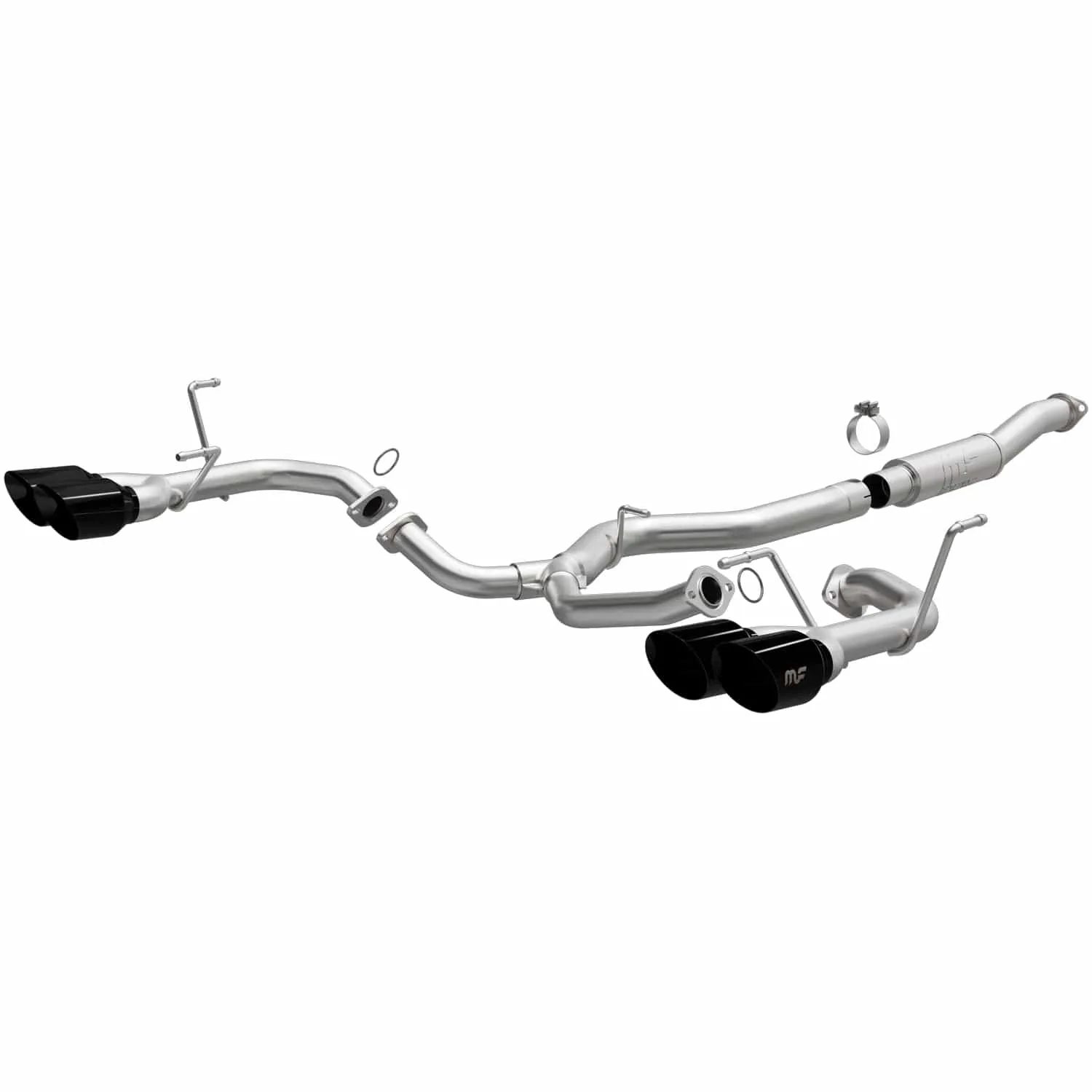 The MagnaFlow Subaru WRX Competition Series Performance Exhaust System #19608 is engineered to bring the sound and performance of your souped-up Subie a step closer to its rally-bred roots. Extensive dyno-testing and careful tuning has resulted in an exhaust kit that will set your 2022-2023 Subaru WRX apart from the rest, with an exhaust note that shows off what a beast your vehicles boxer engine truly is. #19608 features a cat-back configuration with 3 diameter mandrel bent main piping and a fast-flowing, straight through muffler that ends in a quad split rear exit with 4 black chrome finished tips. This Subaru WRX exhaust systems direct-fit, easy-to-install design is made of durable, corrosion resistant stainless steel and constructed using advanced CNC precision robotic manufacturing techniques. MagnaFlow stands by exhaust kit #19608 with our limited lifetime construction warranty and 1-year finish warranty.