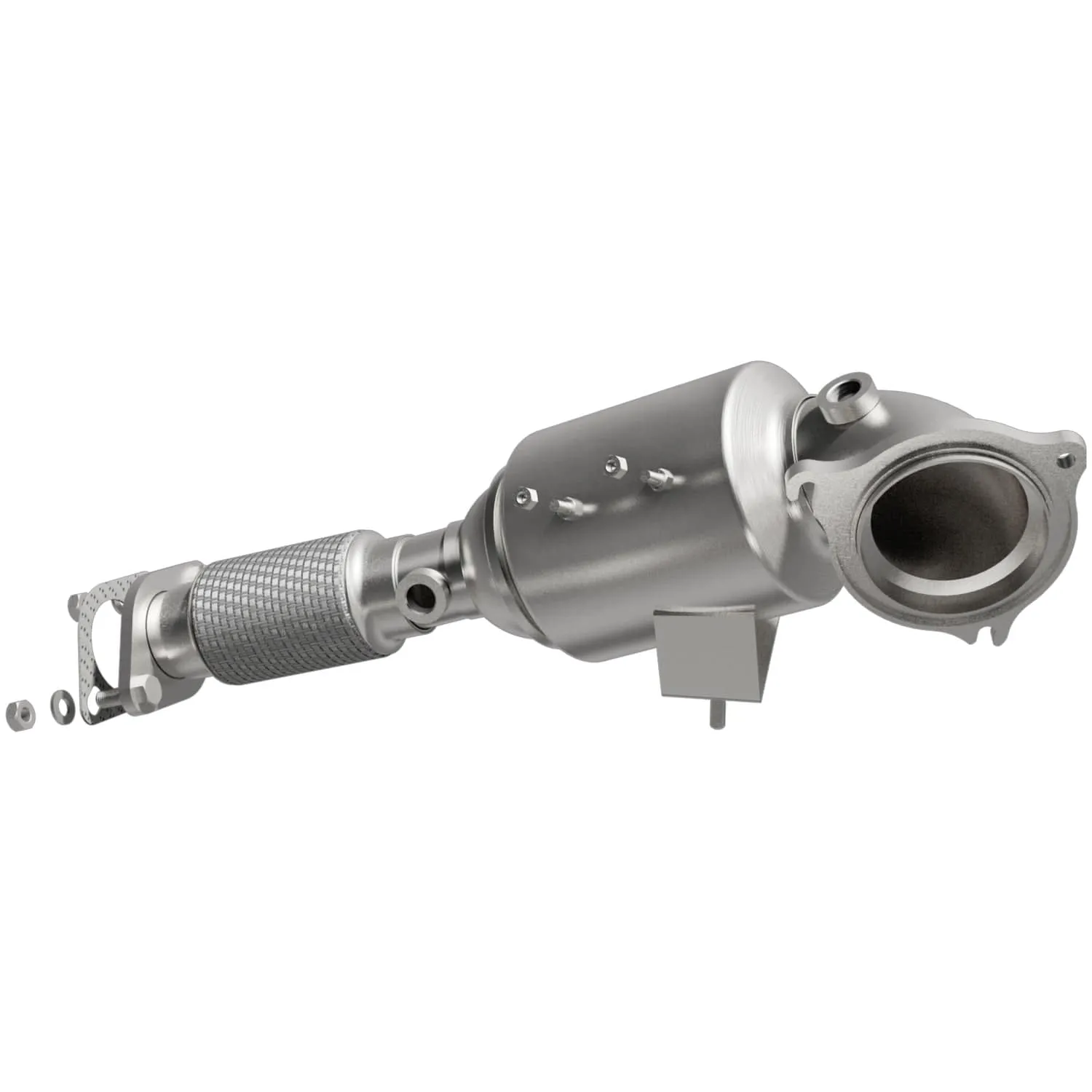 Keep the check engine light off with MagnaFlow OEM Grade Federal/EPA Compliant Direct-Fit Catalytic Converter 21-711. With features including free-flowing mandrel-bent tubing and highly corrosion resistant stainless steel construction, easily install this spun body converter yourself using the proper tools, no cutting or welding required. MagnaFlow's state-of-the-art metrology department uses the latest 3D scanning systems during research and development, so you can be confident that your new part will fit and function like the original equipment. By replicating the OE spun body design, the single laser fusion weld greatly reduces the possibility of a leak, and our compact, low-mass design also allows for greater thermal efficiency. This direct-fit catalytic converter is designed specifically for the 2014-2019 Ford Fiesta and interchanges with OE part D2BZ-5E212-A. The included gaskets & hardware reduce the possibility of a leaking seal while avoiding the need to reuse corroded factory parts for installation. This replacement part is designed to meet or exceed Federal emissions requirements set forth by the EPA, complying with legal standards for OBDII Federally registered vehicles with California or Federal/EPA Emission systems.
