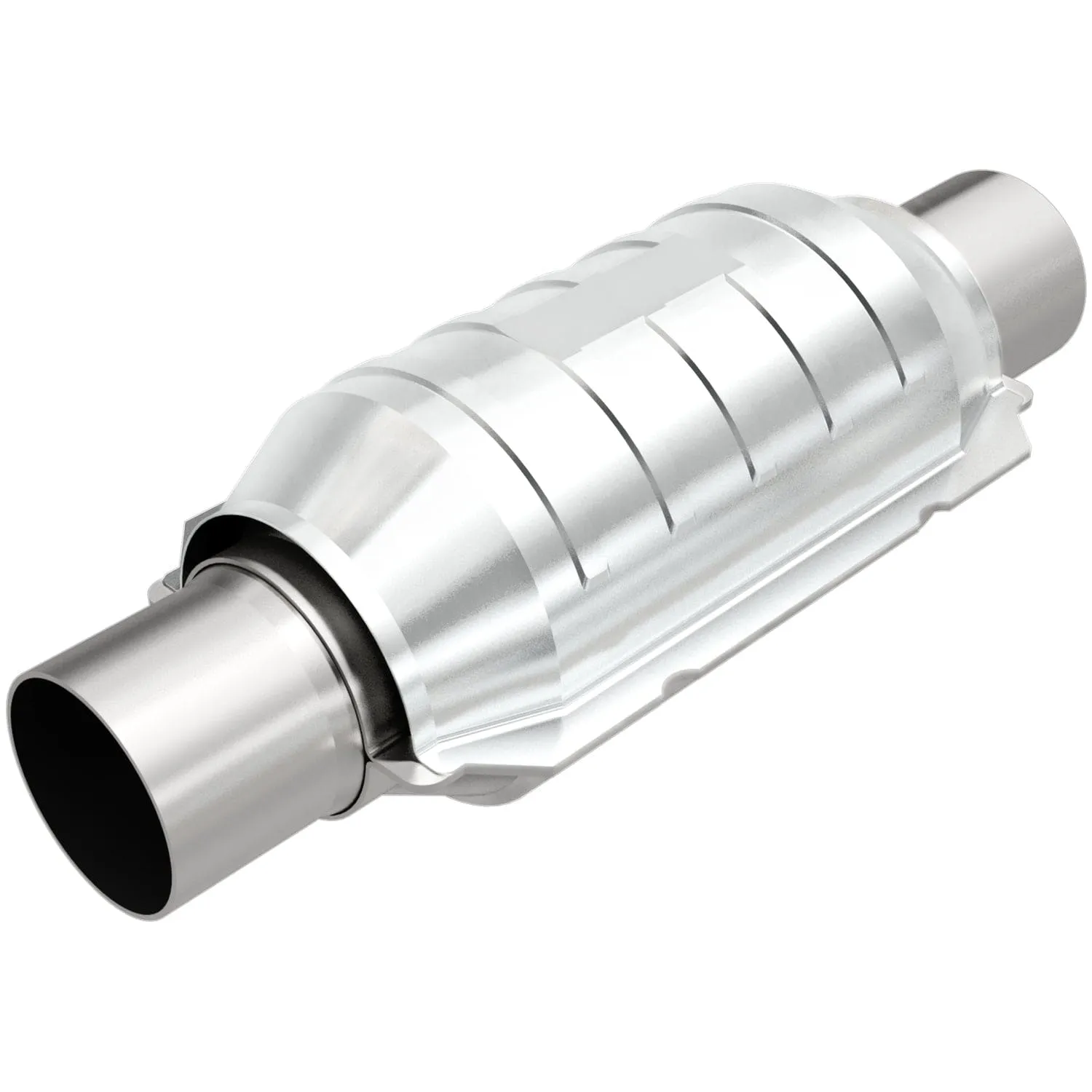 MagnaFlow specializes in superior catalytic converter and exhaust technology and has spent the past 30+ years earning its reputation as a global market leader. American engineered and manufactured, MagnaFlow Catalytic Converters combine efficient industrial design to produce a product that exceeds, rather than meets, the highest standards of product performance and efficiency in the industry. MagnaFlow uses both Ceramic and Metallic substrates with different combinations of cell density and wall thickness to meet vehicle specific requirements. MagnaFlow Universal Catalytic Converters form the basic building blocks for a comprehensive line of direct-fit applications. The main benefit of the universal catalytic converter is that one unit may cover a wide variety of vehicle makes and models. Installing universal converters often requires the use of welding, cutting and tube bending equipment that is readily available to most professional installers. All Federal catalytic converters meet EPA requirements. Federal Catalytic Converters are not legal for sale, installation or use on vehicles registered in the state of California. All California State Catalytic converters are CARB compliant. Converters in this catalog are based on Executive Orders issued by the California Air Resource Board and must be used in accordance with this information. In California, it is illegal to select a catalytic converter for installation based solely on vehicle weight and engine size. * Stainless steel construction * Formulated for Gas and Diesel Applications