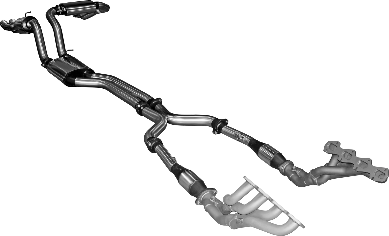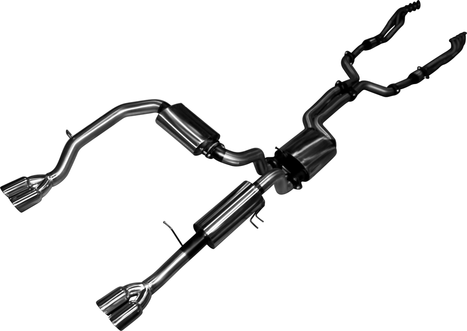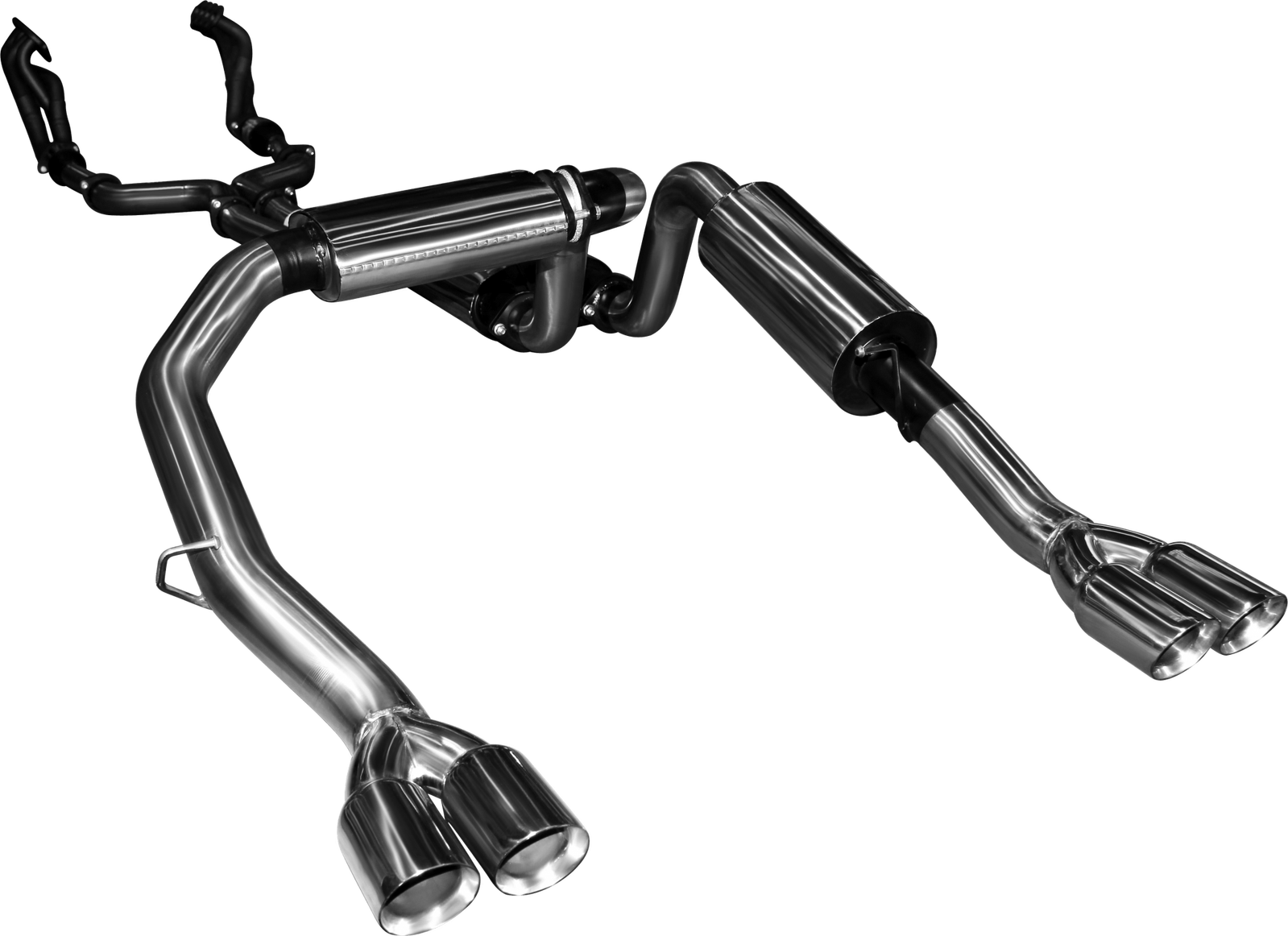 High-flow straight through mufflers are used to control drone, while still allowing maximum performance, and giving off a deep throaty tone. Everything needed to install the exhaust, including a new chassis bracket for the passenger side, is included in the package.