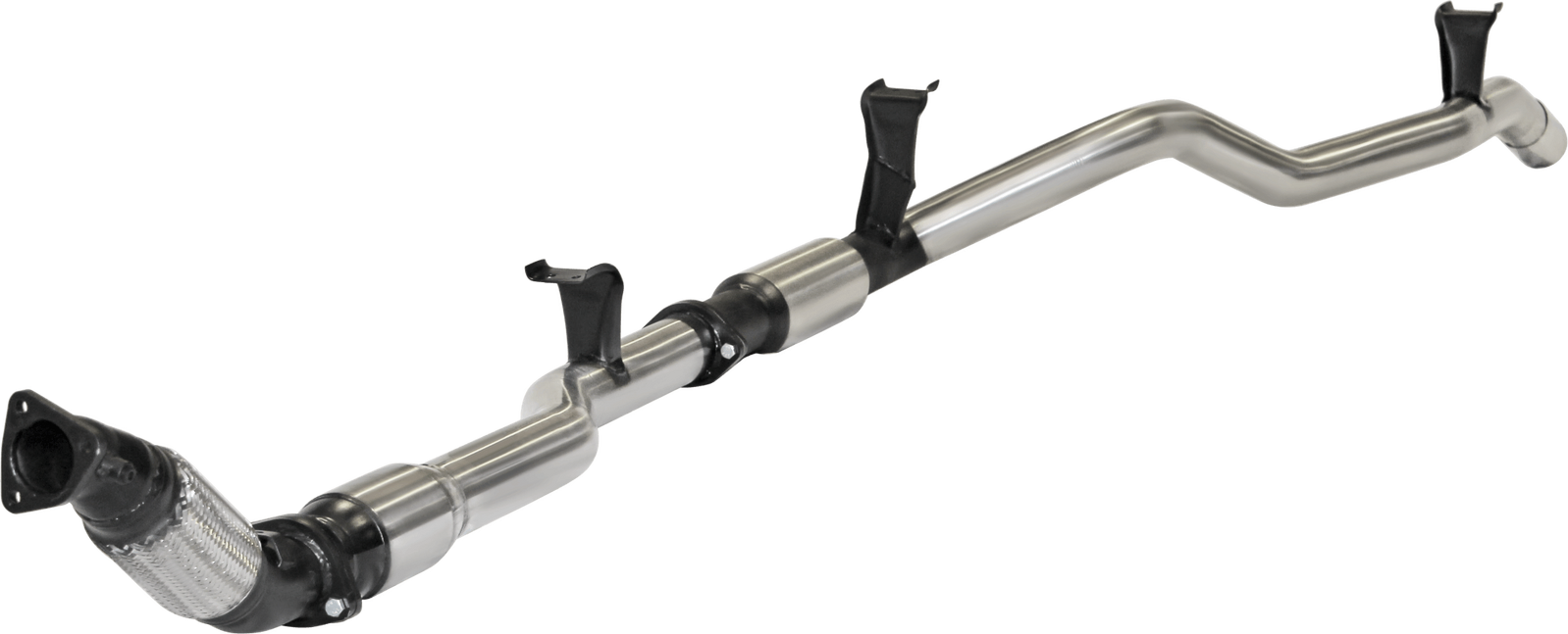 With the standard exhaust going as small as 1 & 7/8?, and running through a diesel particulate filter (DPF) and baffled muffler, the sound of the V8 motor is nowhere to be heard. The fitment of a Manta 3? exhaust system changes all that! Running full 3? piping, right from the either the turbo face or the DPF, to the tail, it’s available in a number of configurations, so you can have an exhaust note close to the factory level, go all out with a wild, unmuffled V8 bark, or find a happy medium somewhere in between.