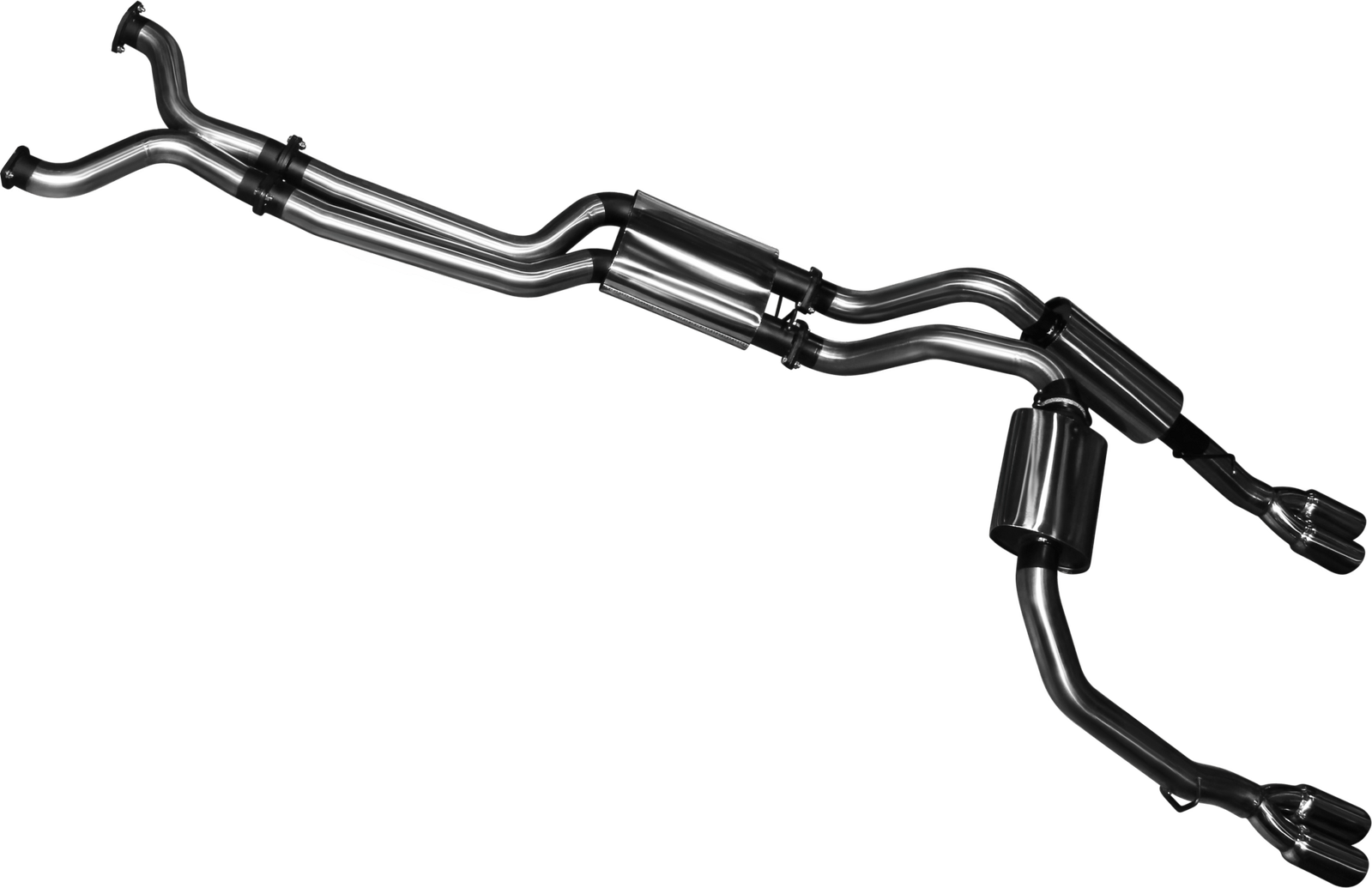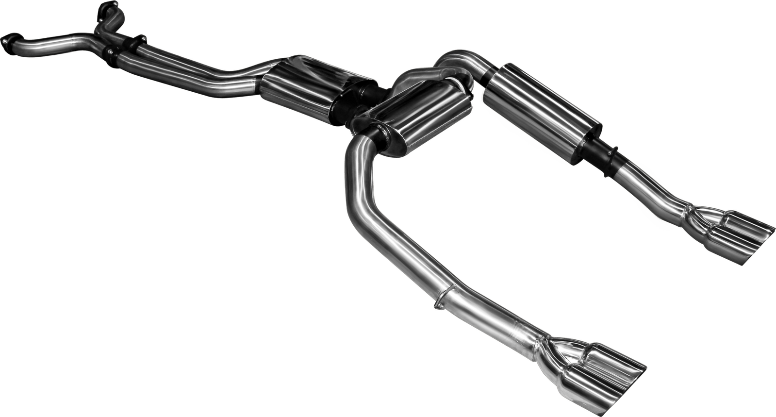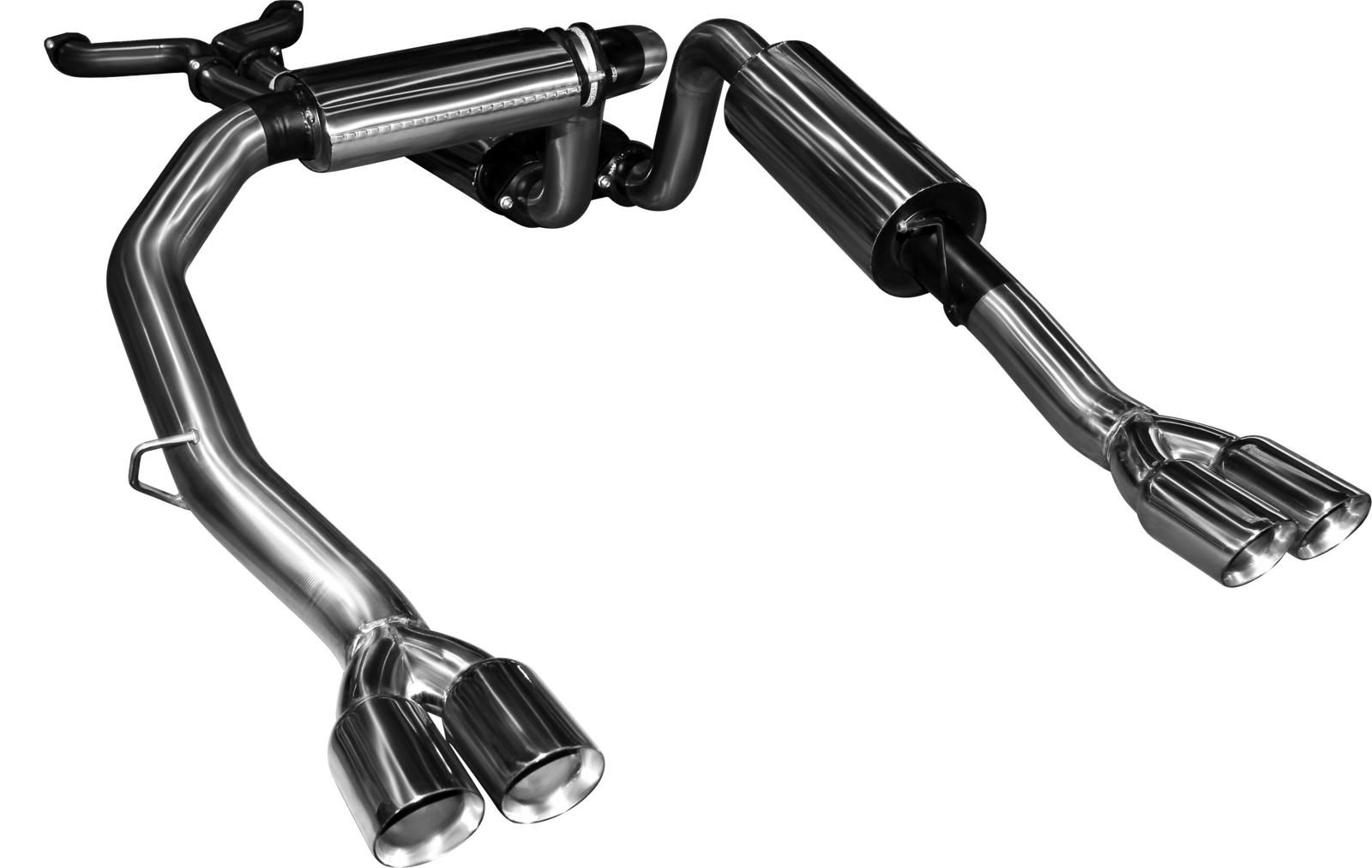 The cat back systems are ideal if you already have aftermarket headers and cats, or are just looking for improved sound, while the full systems with extractors deliver the best gains, have a throatier sound, and are essential if you are performing other engine modifications such as supercharging. High-flow straight through mufflers are used to control drone, while still allowing maximum performance, and giving off a deep throaty tone. Everything needed to install the exhaust, including a new chassis bracket for the passenger side, is included in the package.