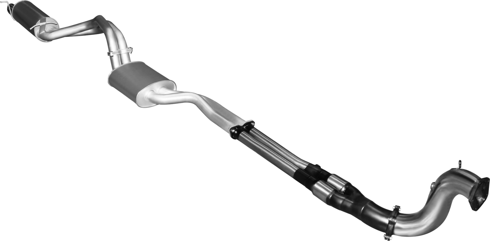 The exhaust note is much improved, allowing the whistle of the turbo to be heard. The two high-flow mufflers used ensure minimal in-cab drone, yet still maintain maximum flow and performance. The cat-back system is also available, which bolts on behind the standard dump pipe and catalytic converter. The cat-back still gives a moderate increase in performance, while improving the sound of the vehicle, allowing that 6-turbo exhaust note to really be heard.