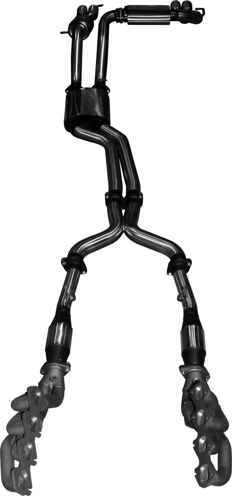 High-flow straight through mufflers are used to control drone, while still allowing maximum performance, and giving off a deep throaty tone. Everything needed to install the exhaust, including a new chassis bracket for the passenger side, is included in the package.