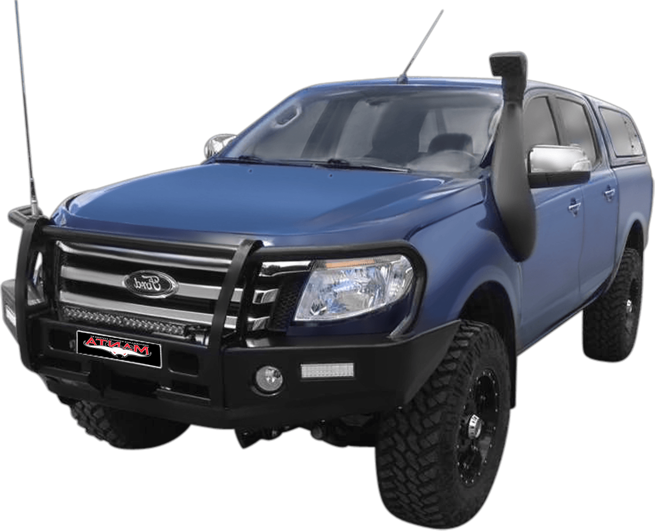 Replacing the standard Ranger exhaust system with a 3” Manta Performance Exhaust has a 3-fold effect. It increases power and torque, by de-restricting the whole exhaust system, using mandrel bends, a high-flow catalytic converter, and a straight through muffler. Secondly, it makes the turbo spool much faster by allowing the exhaust gas to travel at a higher velocity. Finally, it reduces the temperature of the exhaust gasses, allowing the turbo and engine to operate cooler. The high-flow muffler ensures the exhaust noise level is not excessive, while the straight-through design does not impede performance in any way.