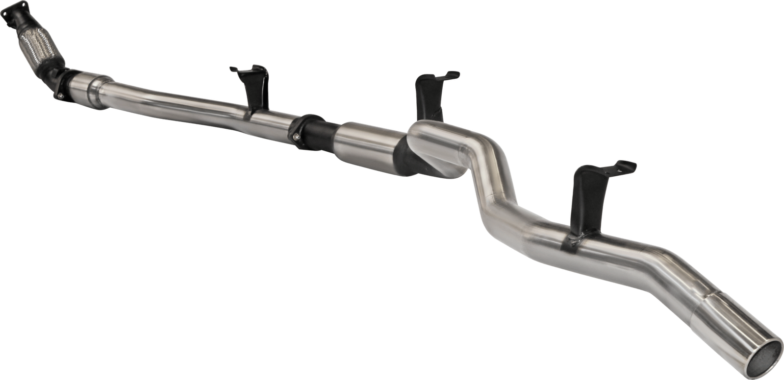 With the standard exhaust going as small as 1 & 7/8?, and running through a diesel particulate filter (DPF) and baffled muffler, the sound of the V8 motor is nowhere to be heard. The fitment of a Manta 3? exhaust system changes all that! Running full 3? piping, right from the either the turbo face or the DPF, to the tail, it’s available in a number of configurations, so you can have an exhaust note close to the factory level, go all out with a wild, unmuffled V8 bark, or find a happy medium somewhere in between.