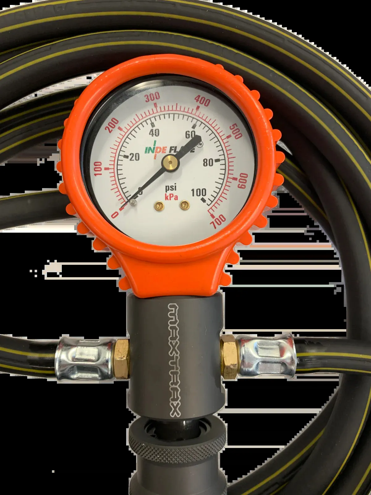 The MAXTRAX INDEFLATE features a 700kpa (100psi) combination pressure gauge (manufactured by one of the world's leading suppliers of high-quality pressure and temperature measurement products) so that you can monitor your tyre pressures while inflating, deflating or equalising the tyre pressures.