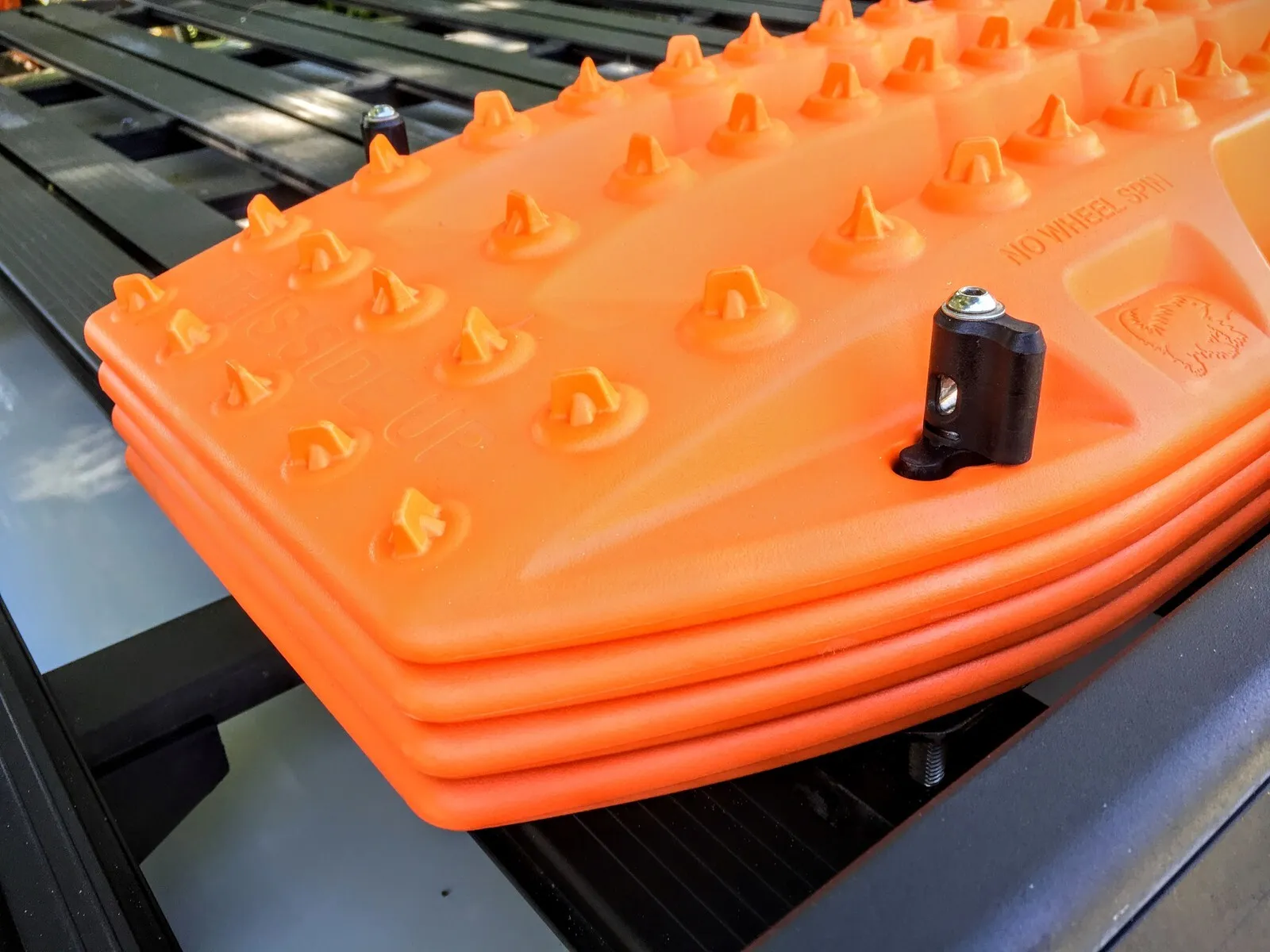 Black Nylon and stainless steel quick-release pins for securely mounting your MAXTRAX on a roof rack or bars. The set includes 4 pins which can securely hold 2 or 4 MAXTRAX, 4 stainless steel Nylock nuts and 4 flat stainless steel washers. There's a hole in the top of each mounting pin for a padlock. * Designed for MAXTRAX MKII only. (MAXTRAX NOT INCLUDED).