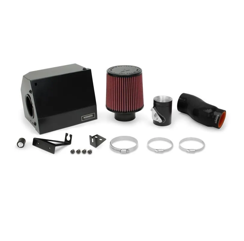 - Mishimoto High-Flow Oiled Air Filter receives maximum airflow from the front of the vehicle