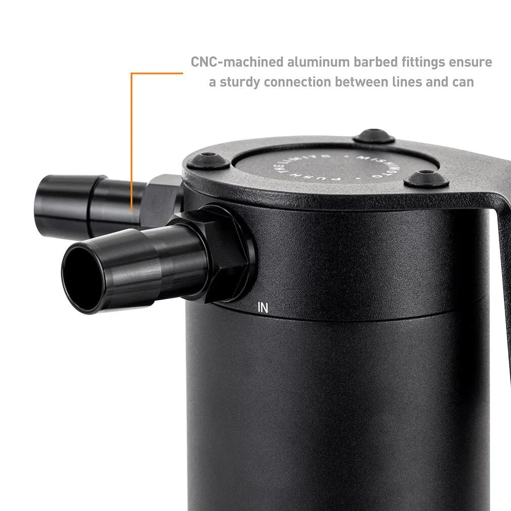 - 3oz catch can captures oil and fuel vapors, preventing fouling of sensors