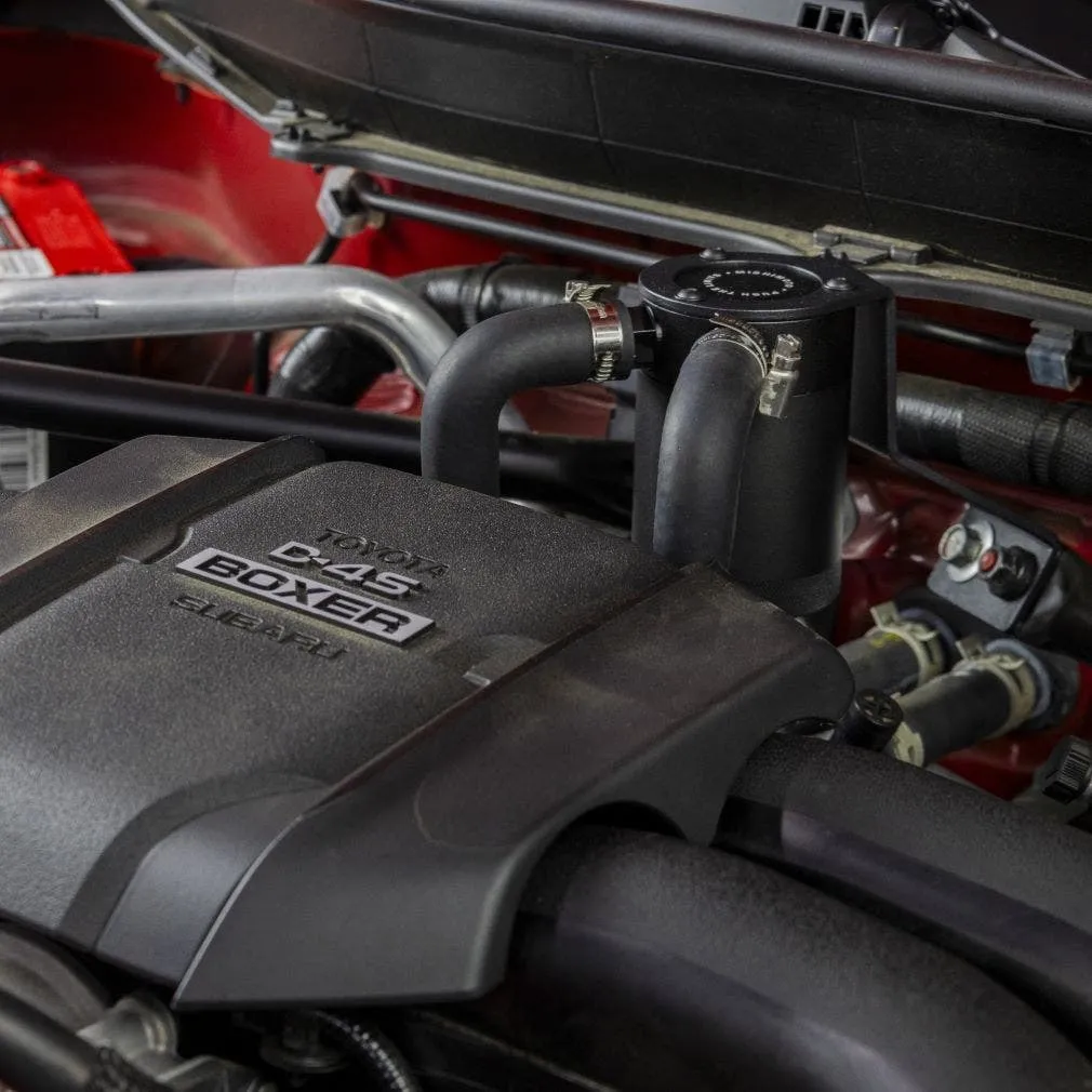 The Mishimoto baffled oil catch can kit is designed and engineered to eliminate harmful blow-by vapors in your BRZ or GR8's intake. The FA24 in the BRZ/GR86 utilizes a combination of direct and port injection to improve power delivery throughout the RPM range, with the added benefit of reduced carbon buildup. While carbon buildup may not be as severe as most direct-injected engines, blow-by alone can wreak havoc on your intake tract. The oil and fuel vapors can condense on sensors, affecting their readings, and the vapor that makes its way into the cylinders can increase the potential for knock and reduce power. The solution is Mishimoto's baffled oil catch can kit for the 2022+ Subaru BRZ and Toyota GR86.