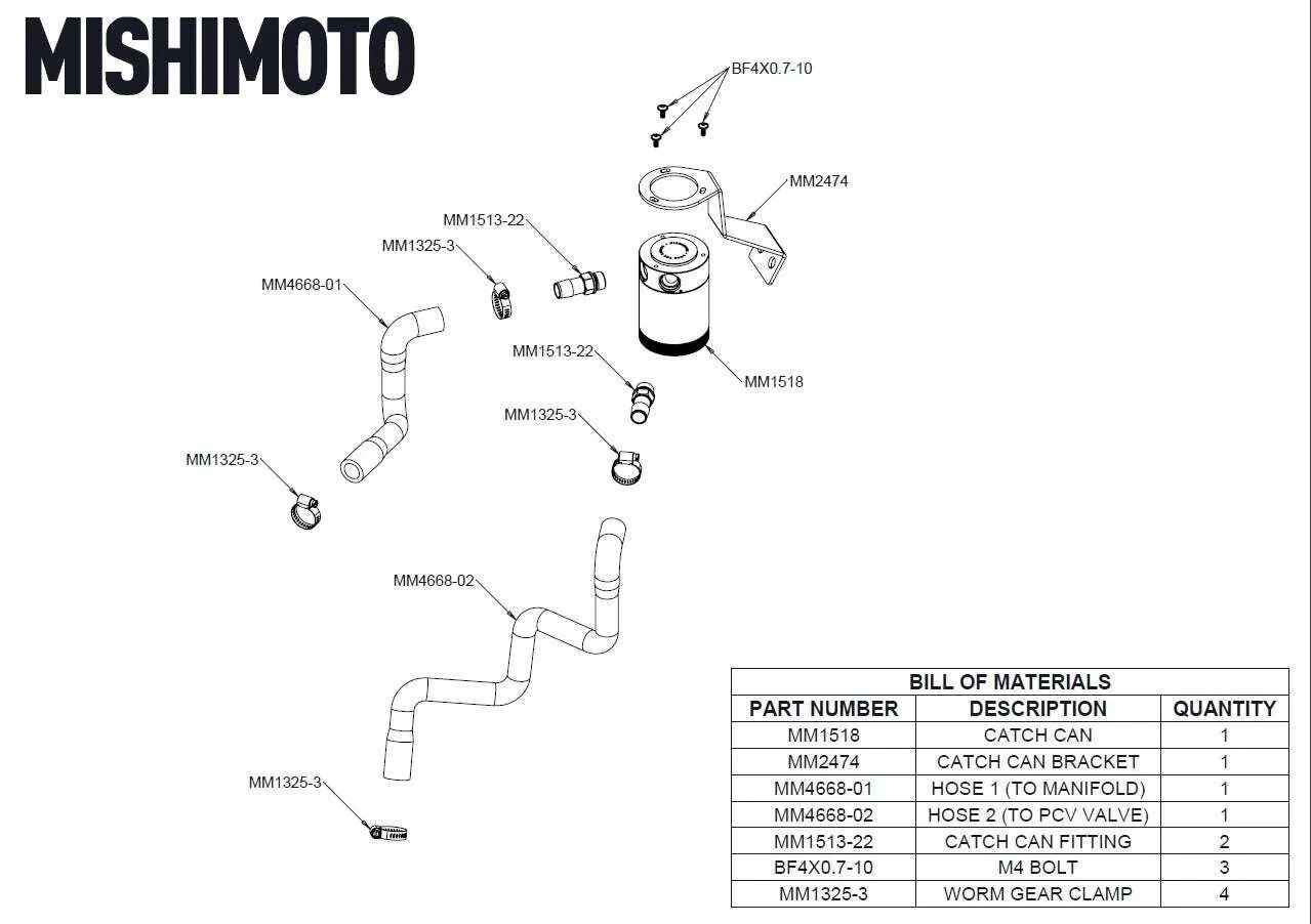 The Mishimoto BRZ/86 catch can kit uses the our 2-port compact baffled oil catch can to separate oil, fuel, and water from the blow-by gasses. Blow-by passes through a bronze filter, air turbulators, and internal baffle when they're condensed in the can and stored away from the intake, waiting to be drained with your next oil change. This kit includes a 3mm-thick steel mounting bracket that secures the catch can away from engine vibration. Our direct-fit catch can kit includes molded hoses designed to seamlessly connect the catch can to the engine and intake manifold. Two O-ring sealed, CNC-machined aluminum fittings connect the hoses to the can for a leak-free installation. Like every Mishimoto oil catch can, this 2022+ Subaru BRZ/Toyota GR86 baffled oil catch can kit is backed by our Mishimoto Lifetime Warranty.