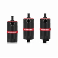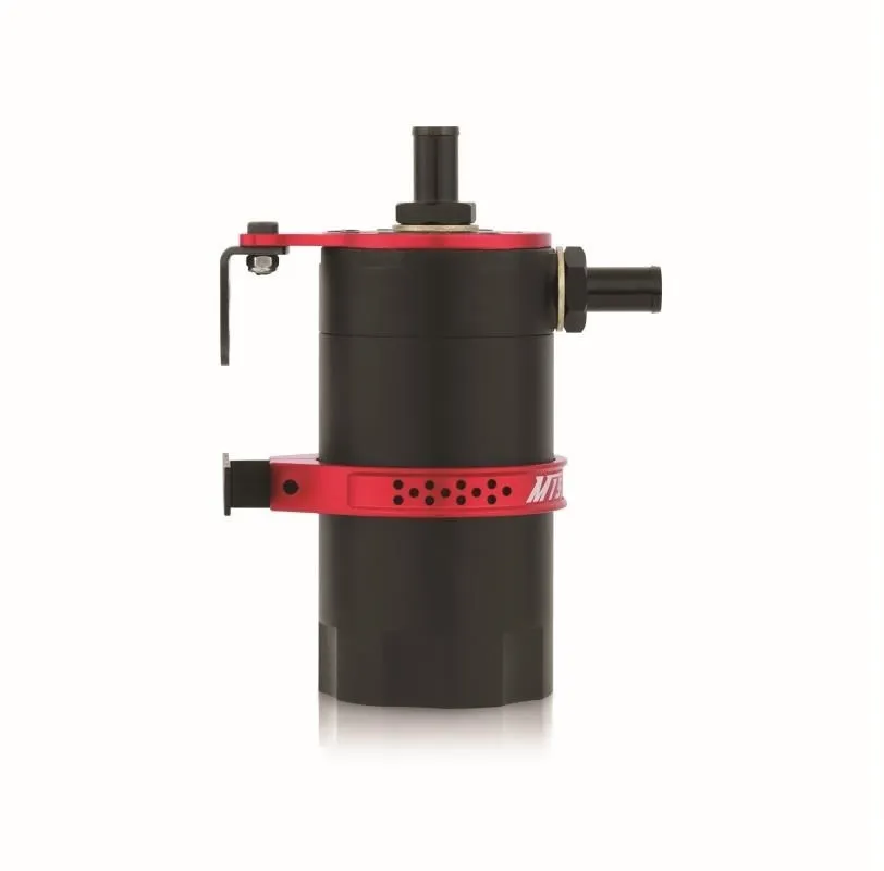 The 100% billet, 6061 aluminum can accepts -AN fittings at the intlet, outlet, and drain area allowing over 27 possible configurations. For maximum fitment options, the top cog mounting setup allows the can to be mounted from multiple angles. To make maintenance easy, the drain plug can be removed to allow for -AN return to the oil pan. The can is also 100% washable, unlike many other cans that require you to replace your filtration system. The Mishimoto Baffled Oil Catch Can is available in a variety of colors as well, so it will be sure to match your style and taste!
