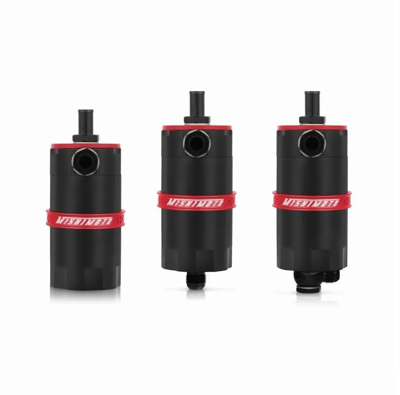 Mishimoto is proud to announce the release of our Baffled Oil Catch Can. With over a year of research and development time, Mishimoto has created the most effective oil catch can on the market. The Mishimoto Baffled Oil Catch Can was designed to separate oil particles from the PCV air that would normally have just been routed back to your intake. Custom grooves in the catch can's inlet turbulates the air longer and ensures all the oil sinks to the bottom of the can, leaving nothing but clean air to pass through the 40 micron bronze filter to the intake. An internal baffle keeps the collected oil from splashing around under race conditions.