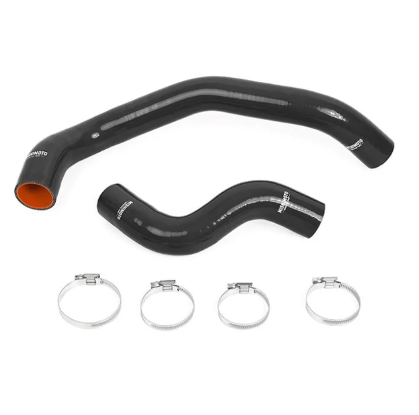 Get rid of the ugly stock rubber hoses in favor of a direct-fit kit made of high-grade silicone with heat-resistant embedded fibres, good for keeping things contained at temperatures of up to 330°F. High-quality worm gear clamps ensure that things stay secure no matter what the conditions are, and the added strength of the materials in both the hose and clamps offer improved pressure tolerance compared to stock.