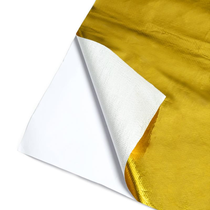 Protecting vital engine components from heat is tough, especially when it comes to fitting into the nooks and crannies of the engine bay. Mishimoto has devised a solution with our Gold Reflective Barrier. Our heat barrier is constructed from metalized polyamide polymer laminated glass cloth for protection of up to 850 F of continuous heat. This heat barrier also features an adhesive backing for simple installation on uneven and tight spaces and can be easily trimmed to suit the installation space.