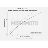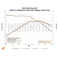 The result of adding the Mishimoto full Performance Intercooler and Piping kit to your 2013-2018 Focus ST in conjunction with the Mishimoto Performance intake is a 21% increase in flow of the charged air through the system, and an additional 8hp and 10ft/lb of torque boost on top of intake and intercooler gains on the stock tune.