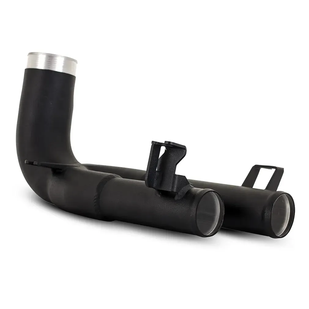 The Mishimoto G8X M3/M4 performance charge pipe replaces the stock rubber and plastic with robust silicone and cast aluminum for a charge pipe that's stronger and 27% less restrictive than stock. Our charge pipe retains the flexibility of the stock front section but replaces the stock rubber hoses with durable silicone for greater heat and pressure tolerance. The plastic merge has been replaced with cast aluminum for a significant durability upgrade, while the transitions have been smoothed to allow improved flow to support future performance upgrades.