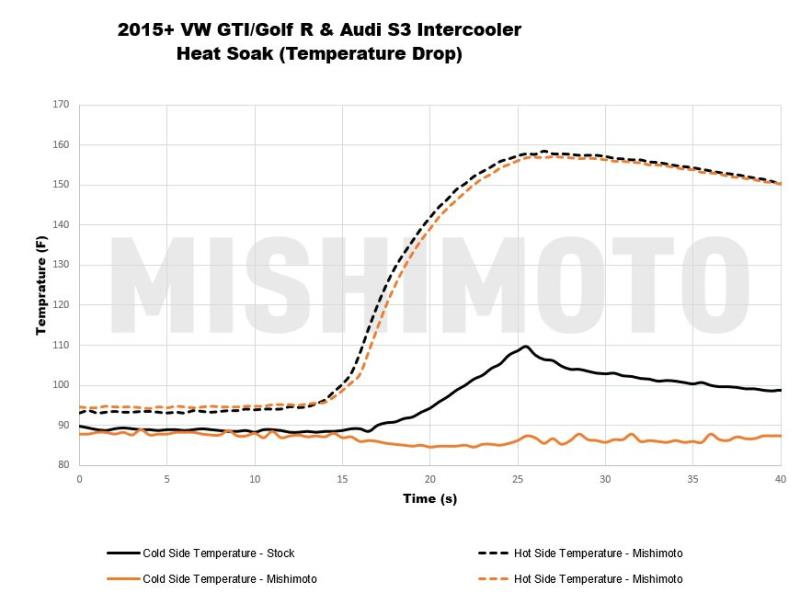 When combined, our innovations for the MK7 intercooling system yielded max power gains of 14 whp and 12 wtq on the stock tuning. In addition, our charged air cooler dropped intercooler outlet temperatures by 12.8°C over stock equipment. Our 2015+ Volkswagen MK7 Golf TSI/GTI/R Performance Intercooler also includes a pair of CNC-machined aluminium mounting brackets and the Mishimoto Lifetime Warranty for a precise and worry-free installation.