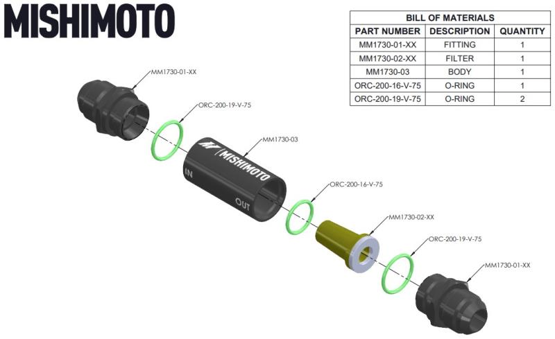 As with all our products, this -AN In-line Pre-Filter includes our signature Mishimoto Lifetime Warranty.