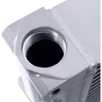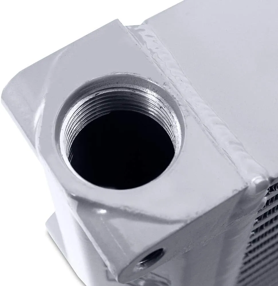 No street, track, or trail build would be complete without a fluid cooler that can keep your engine safe through it all. This Mishimoto heavy-duty fluid cooler is designed to keep your oil, coolant, or transmission fluid cool in even the most extreme situations. The 17-row core is 17” long, 7.5” tall, and 2.5” thick with a 1.95-quart capacity for effective cooling on any high-performance application. This fluid cooler features turbulated fins to evenly circulate fluid within the cooler and make the most of the full core. Large -16AN ports ensure ample flow for even the most demanding engines. The durable cast-aluminum end tanks are precision TIG welded to the bar-and-plate core for a fluid cooler that can endure the stresses of racing or everyday driving. The end tanks feature eight M8 flush mounting points with steel threaded inserts for a secure connection to any custom bracket, while the same-side inlet and outlet make routing lines simple. The available silver or black powder coat protects this cooler against the elements and complements any design. Like all our universal coolers, this 17” heavy-duty bar-and-plate fluid cooler is backed by our Mishimoto Lifetime Warranty for a lifetime of worry-free performance.