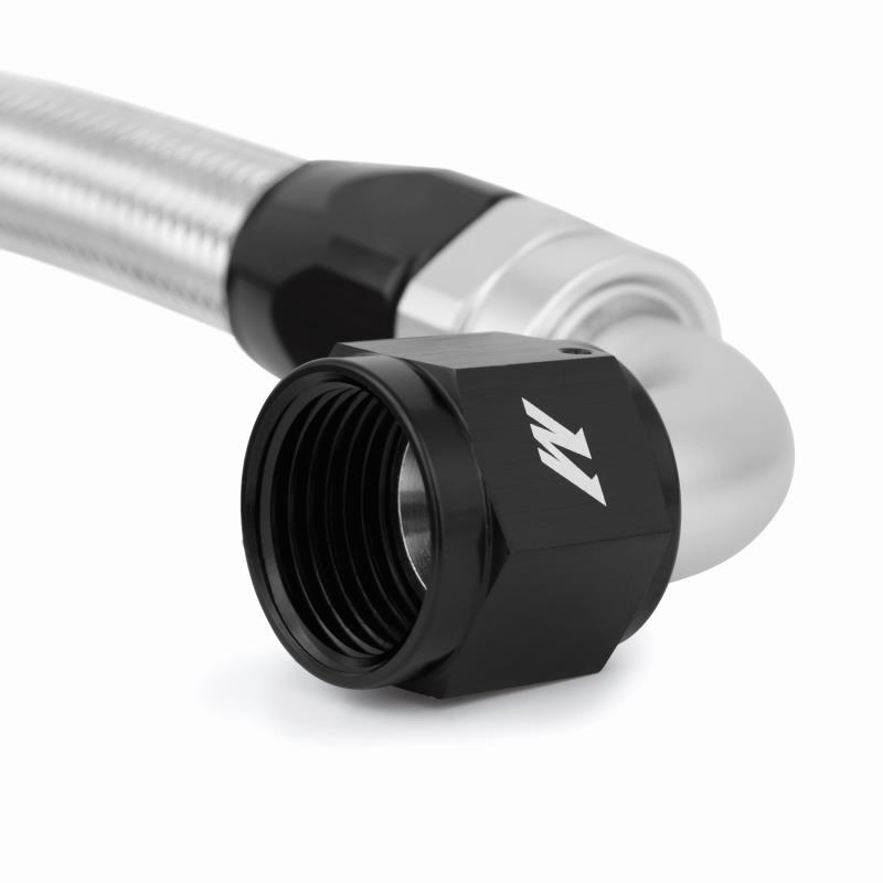 Light and flexible, the Mishimoto Stainless Steel Braided Hose is the perfect complement to your oil cooling system and engine bay. The stainless steel construction not only adds to the look of your engine bay, but also prevents corrosion and abrasion. Each light weight hose comes pre-assembled with one 90 degree swivel -10AN fitting and one straight swivel -10AN fitting. With an operating temperature range from -40 degrees F to +300 degrees F and a maximum PSI of 750PSI, you can trust that this hose can withstand the high temperatures that come with performance vehicles, on or off the track. The Mishimoto Stainless Steel Braided Hose can also be used for fuel, oil, vacuum, and water line applications, and is covered by a Lifetime Warranty