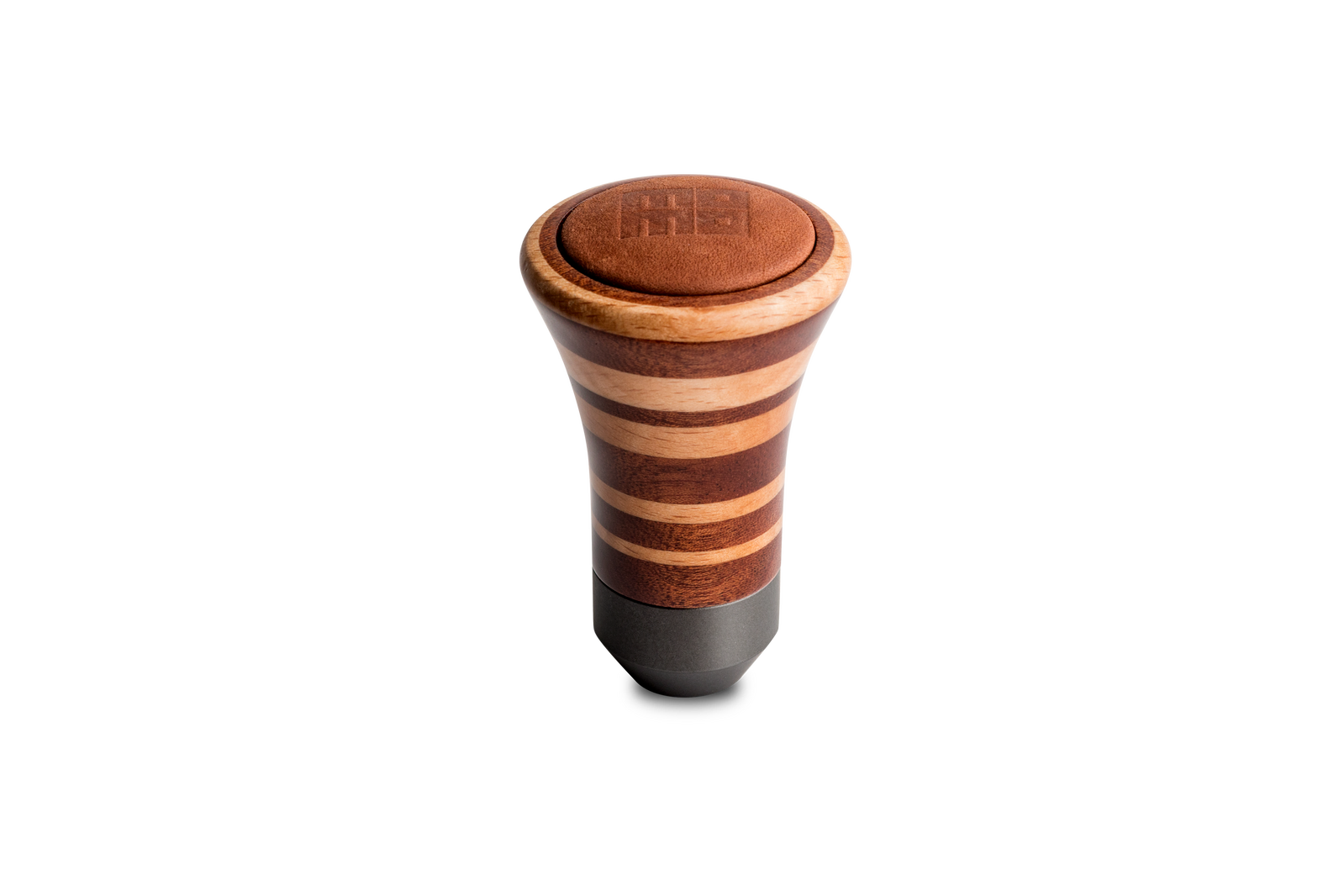 The craftsmanship of MOMO's artisans reaches its climax thanks to the extraordinary woodworking: mahogany wood and beechwood are expertly sanded and layered along the whole body of Trofeo with the result of a complex but harmonious game of contrast between colours and materials. Crown jewel of this shift knob is the vintage tobacco leather top, with the stamped MOMO Heritage logo. Trofeo is more suitable for a three-fingers grip for a faster gear shifting, with a greater taste of racing.