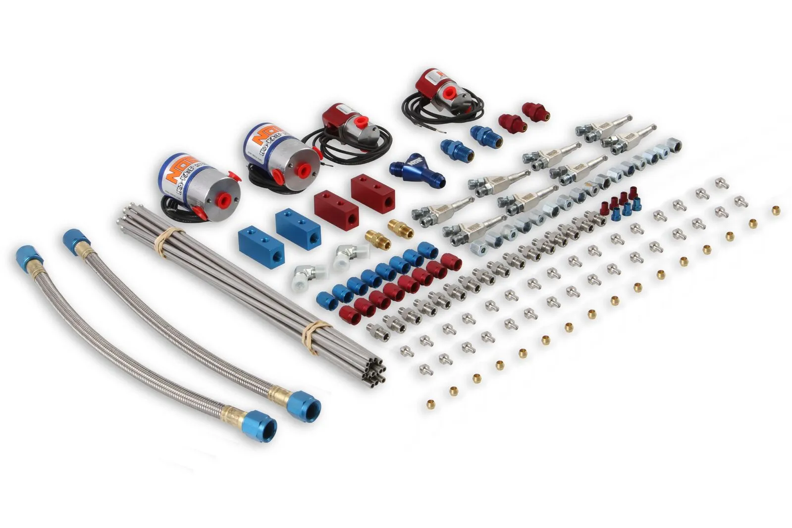 The new Pro Race Fogger System has had many hours of R&D at the race track which equates into new track tested tune ups. The Pro Race Fogger is for the professional nitrous user and is capable of providing an additional 500 + HP. The Pro Race Fogger comes with new improved solenoids, stainless steel hard lines, distribution blocks, jetting and hardware. Available separately, NOS offers electrical wiring kits and bottle kits in a variety of combinations so you can make up your own custom kit combinations.