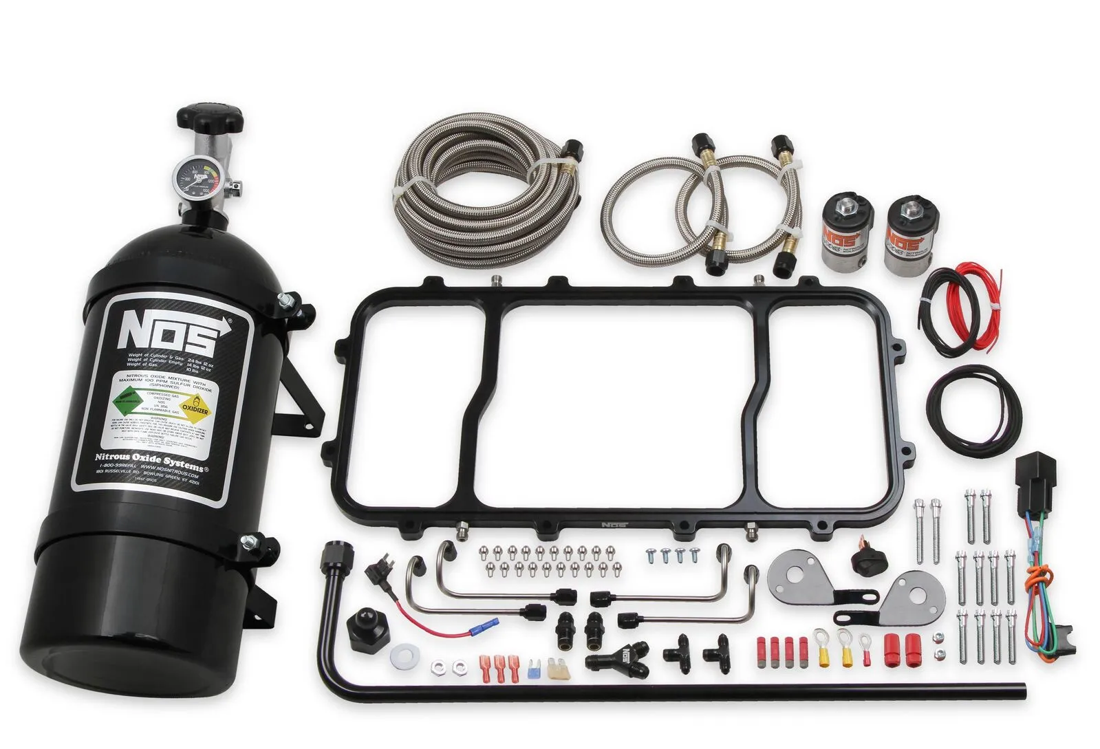 • Includes Plate, Gasket, Hardware, Jet Holders, Solenoids, Brackets, Hose, Fittings, and Jetting for up to 250 horsepower