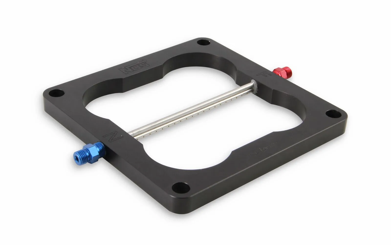Big Shot Injector Plate, w/ Jets & Plumbing, Holley Dominator, V8 - Assure a steady, precise metered flow of nitrous and fuel for reliability. Backed with years of laboratory research, as well as dyno and drag strip testing. NOS Injector Plates are available for those who want to build their own system or upgrade their current nitrous system without having to go through the expense of a new complete system. Unless specified, NOS Injector plates incorporate a low profile (1/2" thick) design and are constructed of solid billet or die cast aluminum with a durable black finish. Included are all applicable gaskets, studs, jets and plumbing.