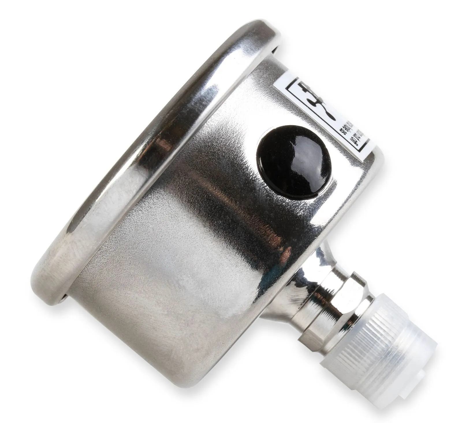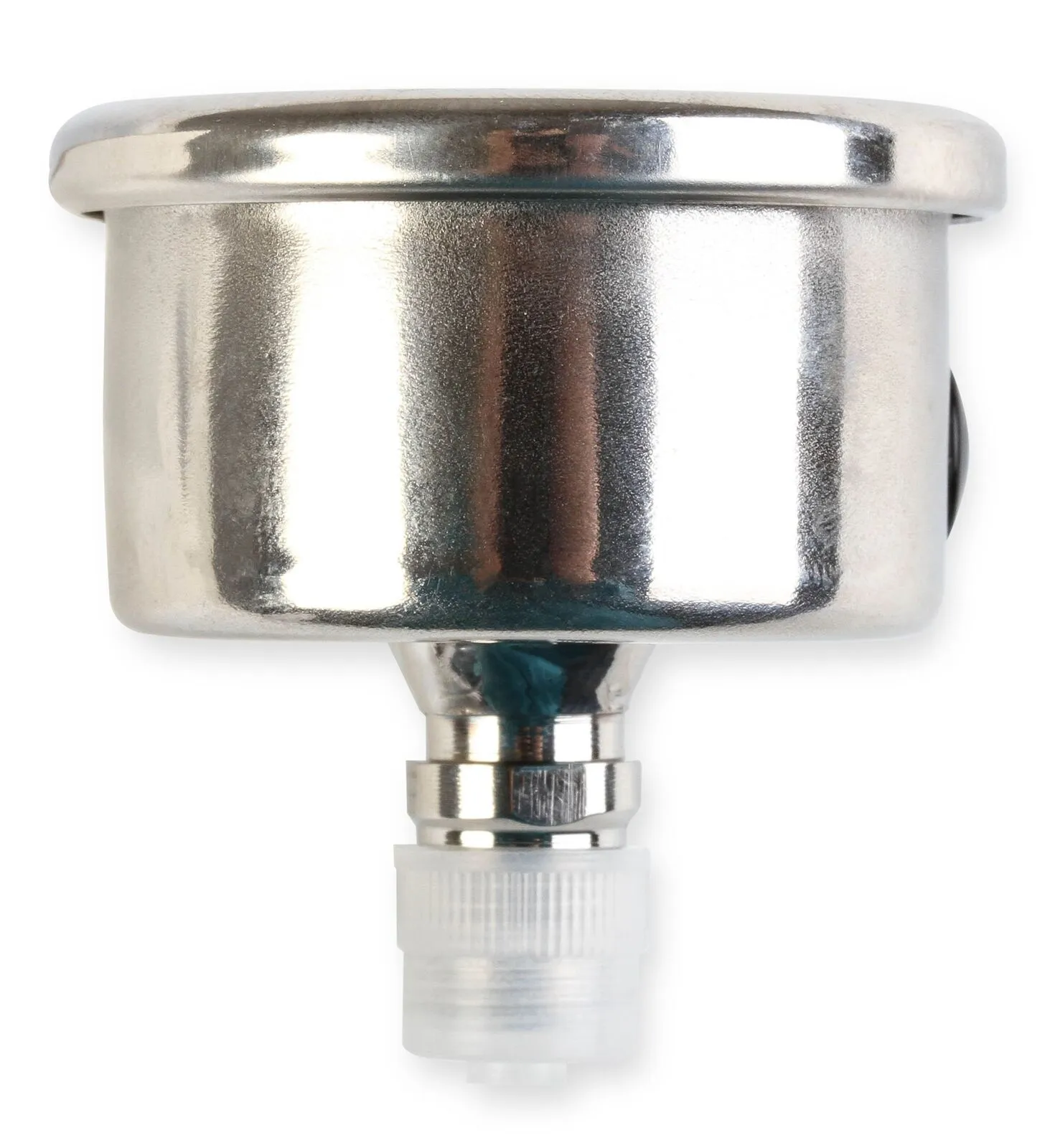 Blue and black face nitrous gauges with easy-to-see color graduations and a white pointer. Liquid filled NOS brand gauges feature an all stainless steel construction. Dry gauges have a stainless steel case with brass internals. Sniper brand liquid filled gauges are contstructed of a stainless steel case and brass internals, dry gauges are chrome plated steel case with brass internals.