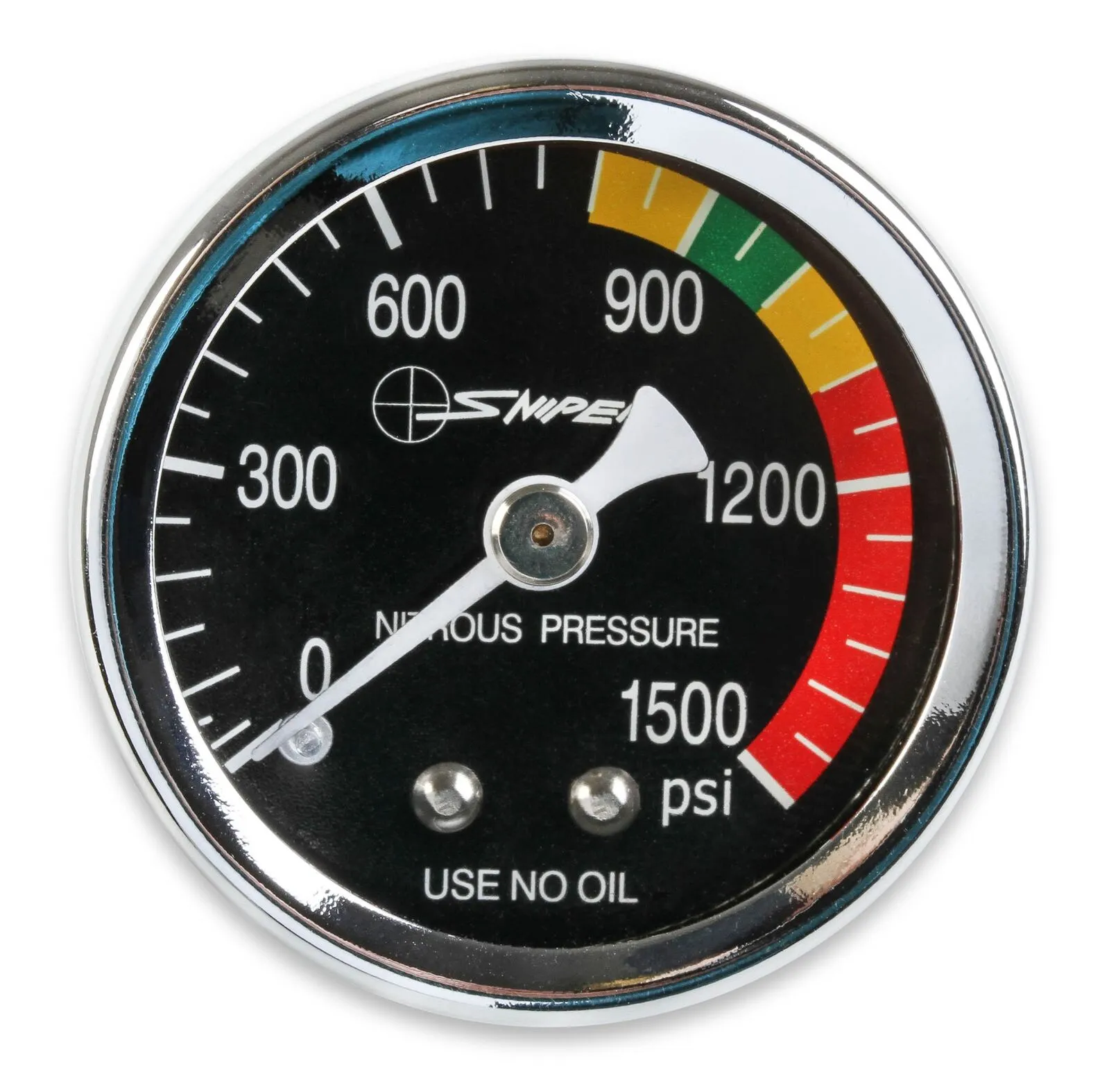 Blue and black face nitrous gauges with easy-to-see color graduations and a white pointer. Liquid filled NOS brand gauges feature an all stainless steel construction. Dry gauges have a stainless steel case with brass internals. Sniper brand liquid filled gauges are contstructed of a stainless steel case and brass internals, dry gauges are chrome plated steel case with brass internals.