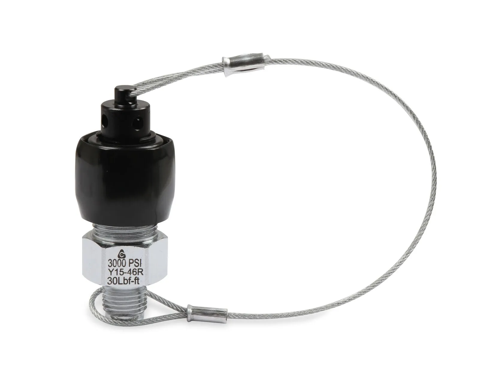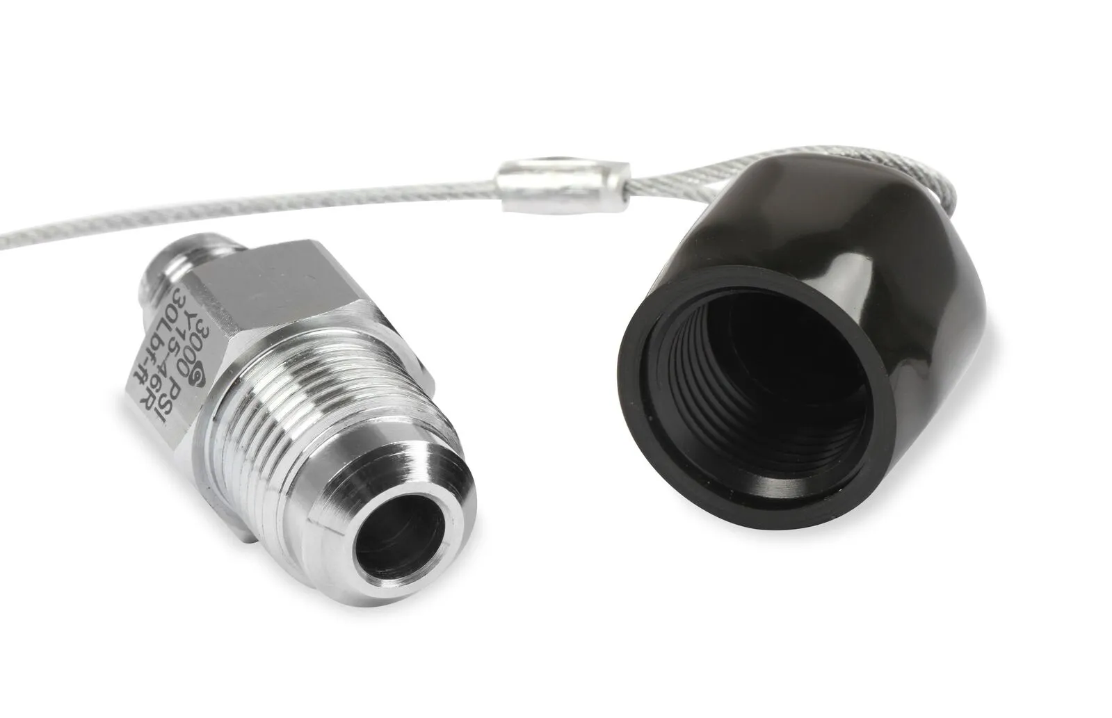 NOS BLACK Racer's safety adapter. For use with the NOS 2nd and 3rd generation Hi-Flo and Super Hi-Flo nitrous bottle valve. Features an AN -8 adapter with black diffuser cap installed.