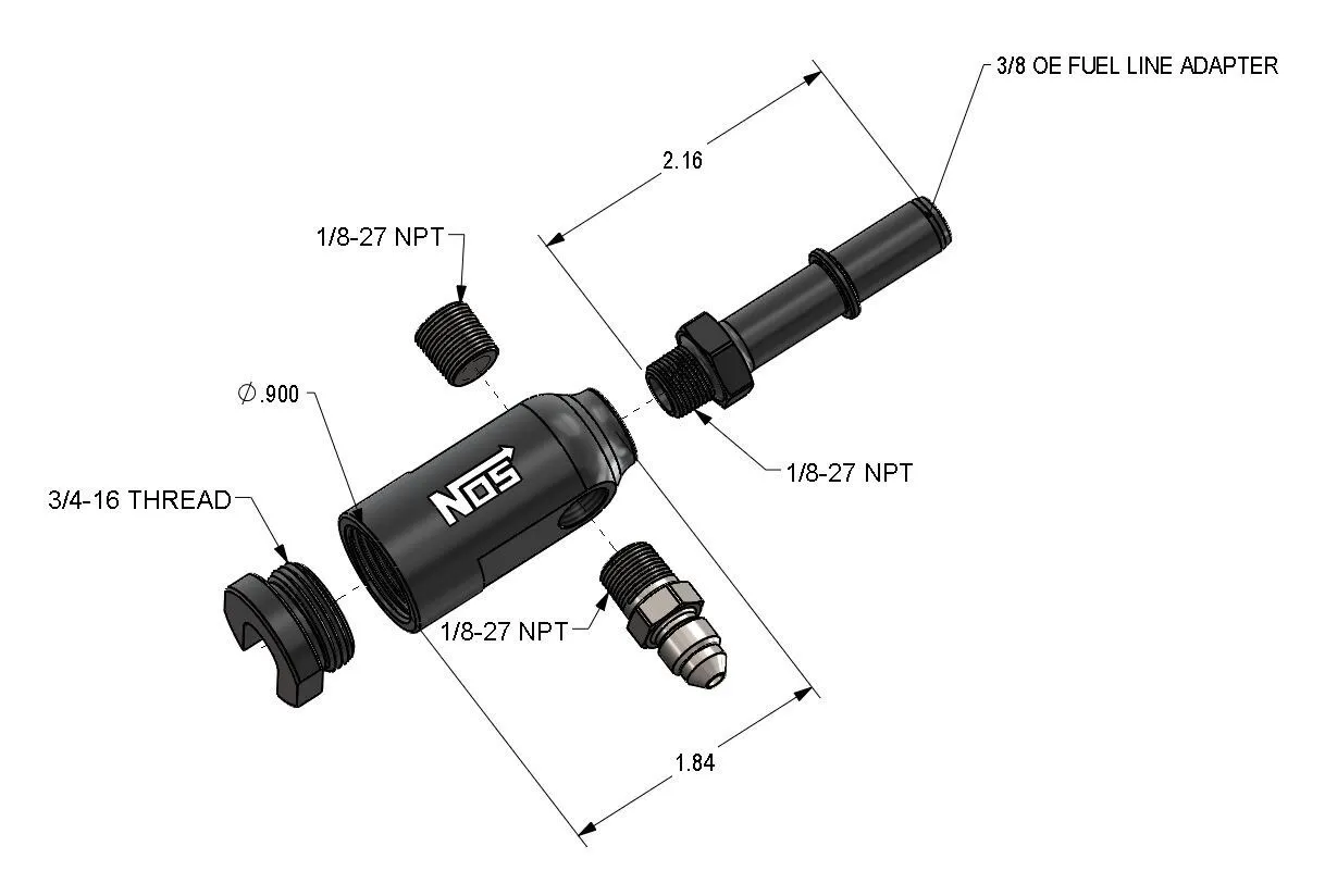 Eliminates Cutting, Drilling & Modifications When Installing Nitrous on a Late model Fuel Injected Vehicle. Simply disconnect the OE Fuel Hose and Install this Adapter Between the OE Fuel Rail and Fuel Hose. The (3) 1/8" NPT Ports Can Be Configured in Any Direction For Best Fit In Your Application. The -4 AN Adapter is Used to Feed Fuel to Your Nitrous Plate.