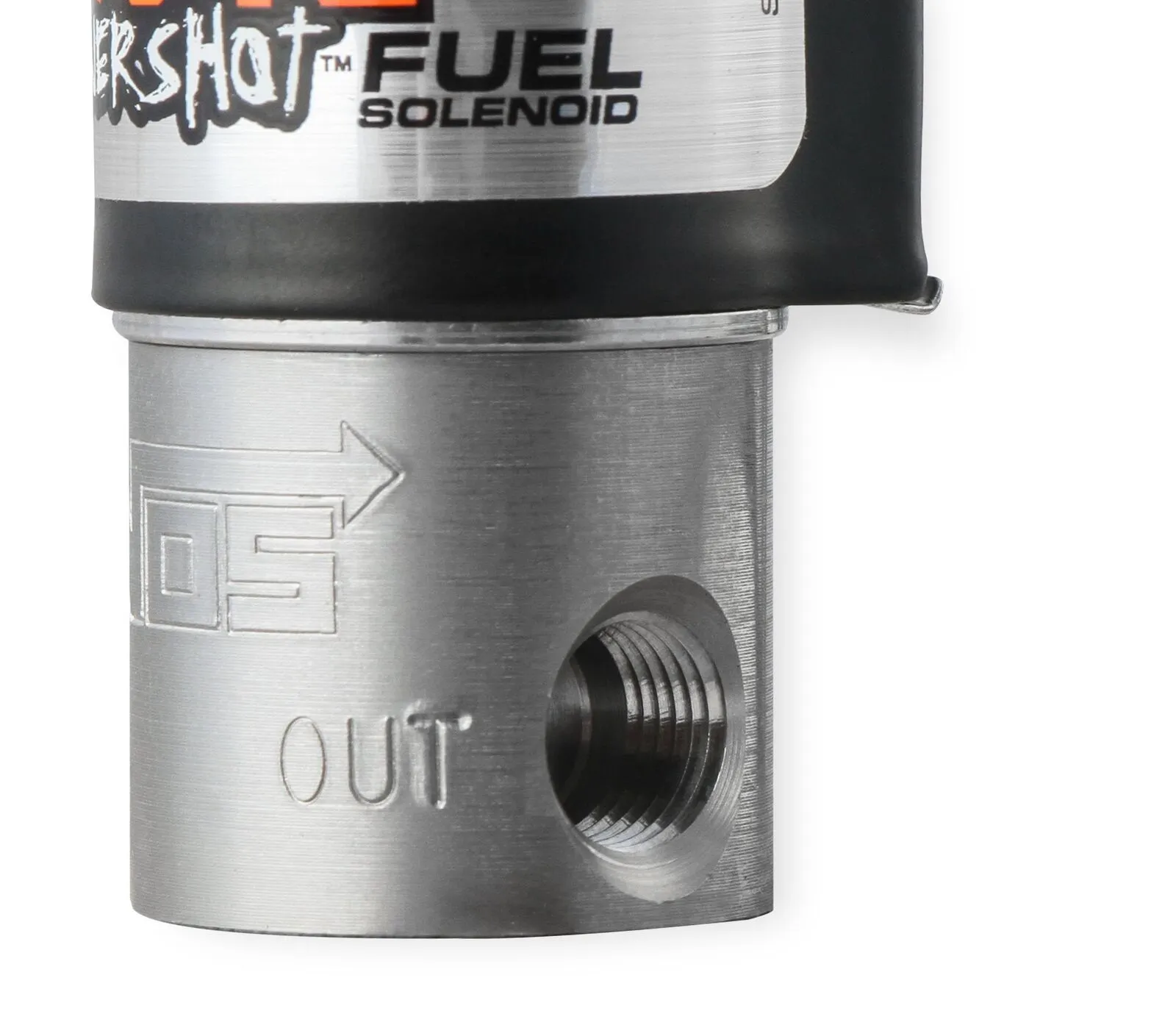 NOS Powershot solenoids have been the standard in the performance and racing world for years and are designed for optimum flow and operation. These solenoids feature a black powder coated housing for good looks and large orifice sizes. All NOS solenoids feature stainless steel bases with the NOS logo along with in/out stamped in so you know it is a quality NOS solenoid.