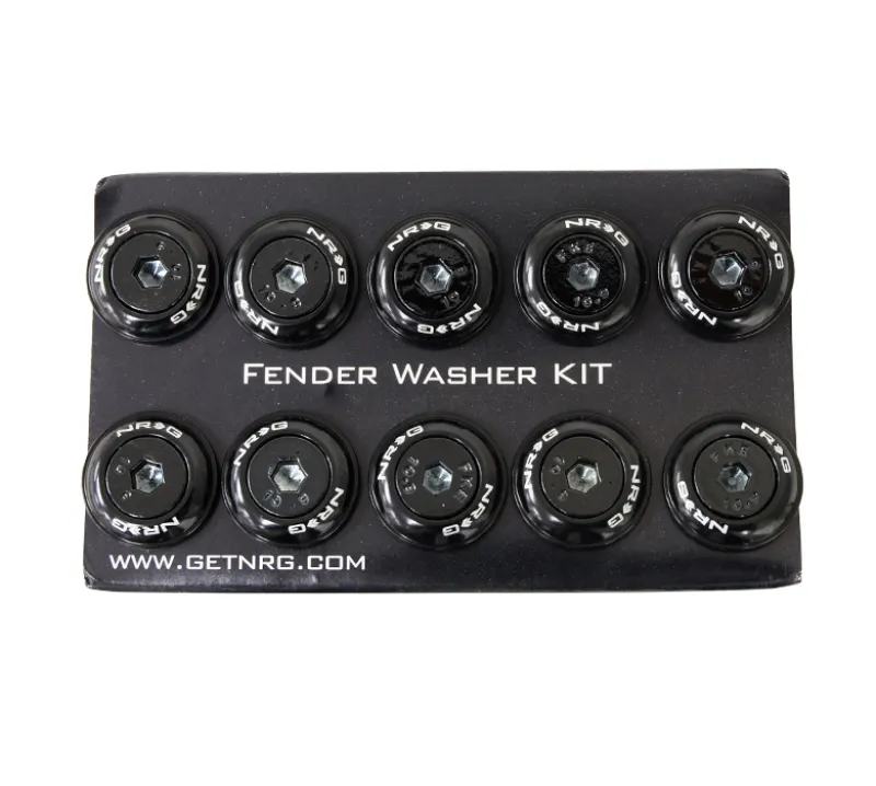 NRG Fender Washer Kit w/Color Matched M6 Bolt Rivets For Plastic (Black) - Set of 10