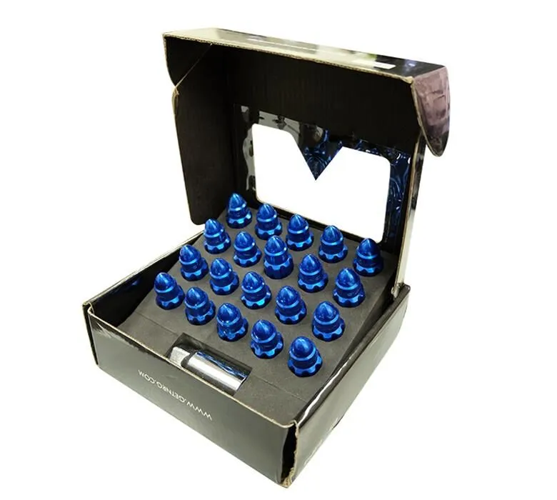 NRG 500 Series M12 X 1.25 Bullet Shape Steel Lug Nut Set - 21 Pc w/Lock Key - Blue