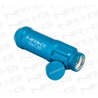 NRG 700 Series M12 X 1.25 Steel Lug Nut w/Dust Cap Cover Set 21 Pc w/Locks & Lock Socket - Blue