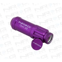 NRG 700 Series M12 X 1.25 Steel Lug Nut w/Dust Cap Cover Set 21 Pc w/Locks & Lock Socket - Purple