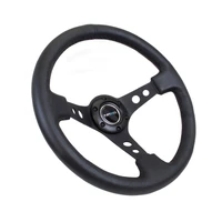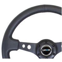 NRG Reinforced Steering Wheel (350mm / 3in. Deep) Blk Leather w/Blk Spoke & Circle Cutouts