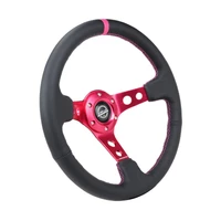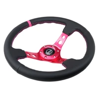 NRG Reinforced Steering Wheel (350mm/3in. Deep) Black Leather/ Fushia Center Mark/ Fushia Stitching