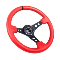 NRG Reinforced Steering Wheel (350mm / 3in. Deep) Red Suede w/Blk Circle Cutout Spokes