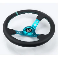 NRG Reinforce Steering Wheel (350mm / 3in. Deep) Blk Leather, Teal Center Mark w/ Teal Stitching