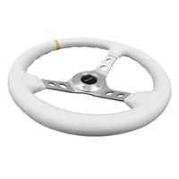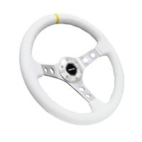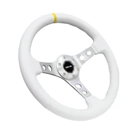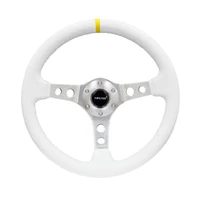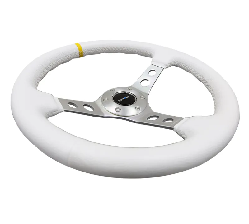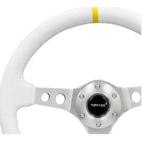 NRG Reinforced Steering Wheel (350mm / 3in. Deep) Wht Leather w/Silver Spoke & Single Yellow Mark