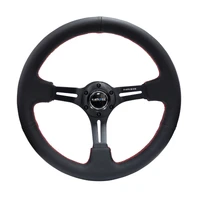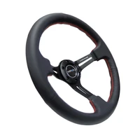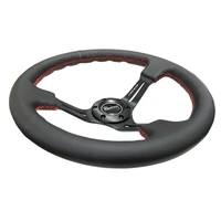 NRG Reinforced Steering Wheel (350mm / 3in. Deep) Black Leather/Red Stitch & Blk 3-Spoke w/Slits