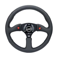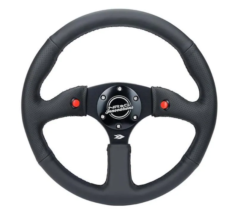 NRG Reinforced Steering Wheel (350mm/ 2.5in. Deep) Sport Leather Racing/ 4mm Matte Black Spoke