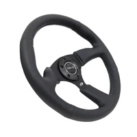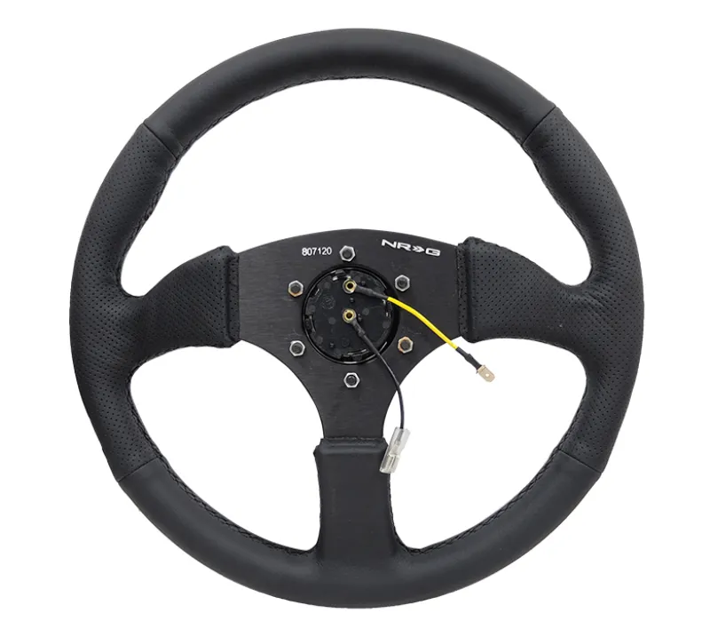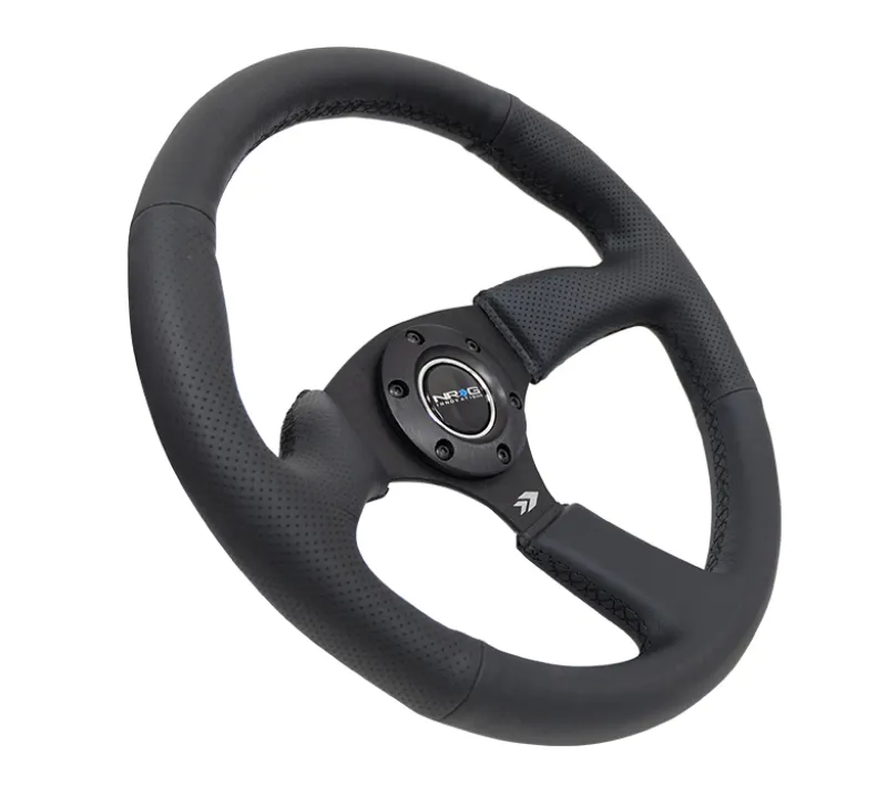 NRG Reinforced Steering Wheel (350mm / 2.5in. Deep) Blk Leather Comfort Grip w/5mm Matte Blk Spokes