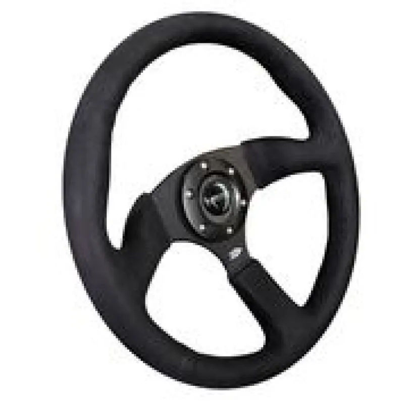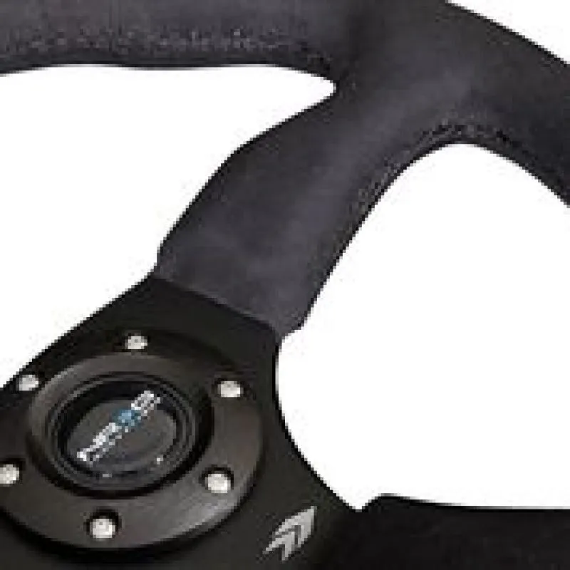NRG Reinforced Steering Wheel (350mm / 2.5in. Deep)Blk Alcantara Comfort Grip w/4mm Matte Blk Spokes